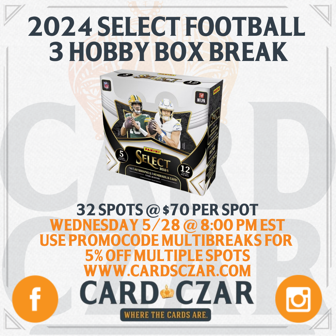 2024 Select Football 3 Hobby Box Break One of the hottest releases is making its way onto our shelves on Wednesday and into our break schedule as well! Select Football is back with the sought after silvers, RPAs, Case Hits and MORE for 2024 and we have it ready for you Wednesday night! This break... View Article