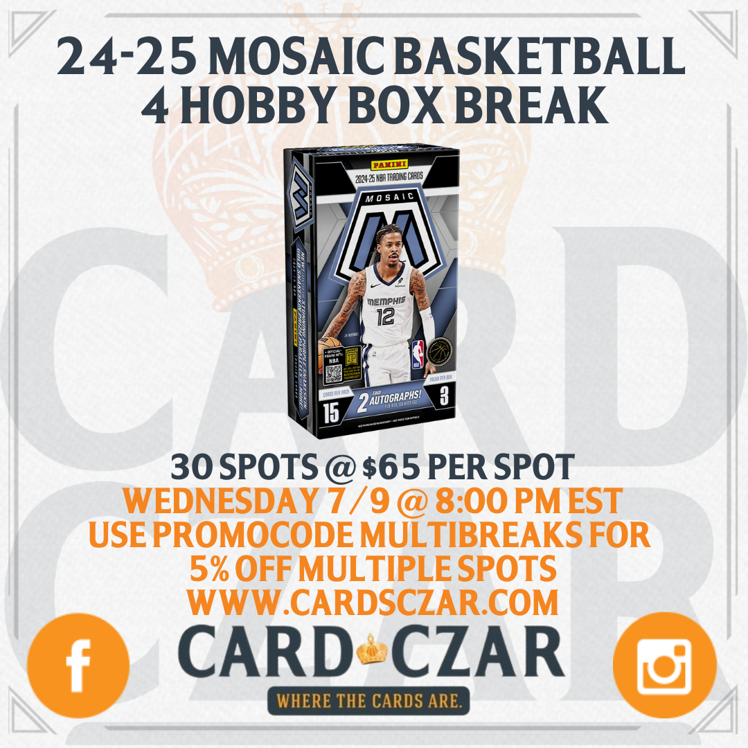2024-25 Mosaic Basketball 4 Hobby Box Break It has been FAR too long since we have had a Wednesday night break session, and for that, we apologize. We have had a LOT going on here at Card Czar these past few weeks, plus a pretty meh release schedule. With that being said, we are SO... View Article