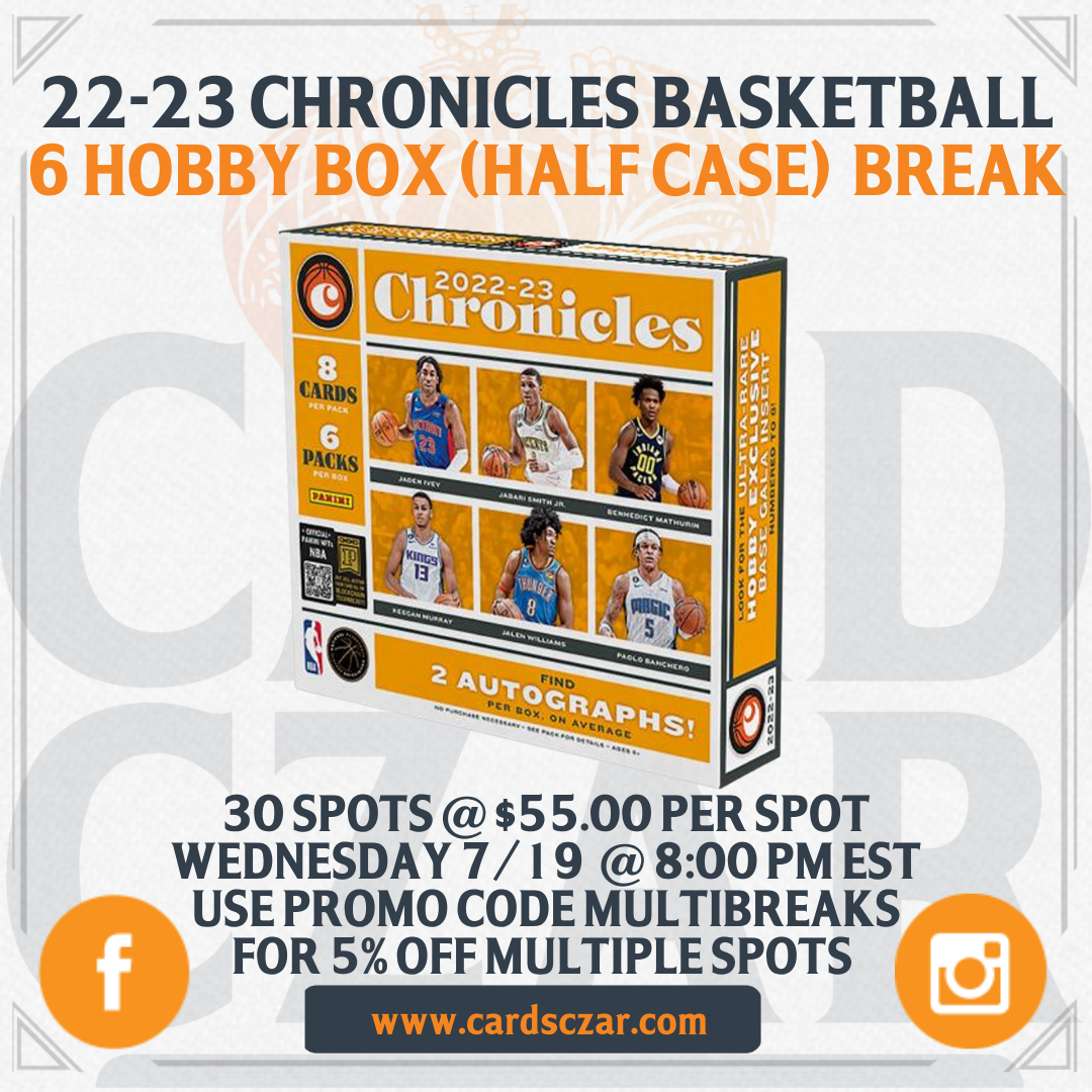 • 2022-23 Panini Chronicles Basketball 6 Hobby Box (Half Case) Break