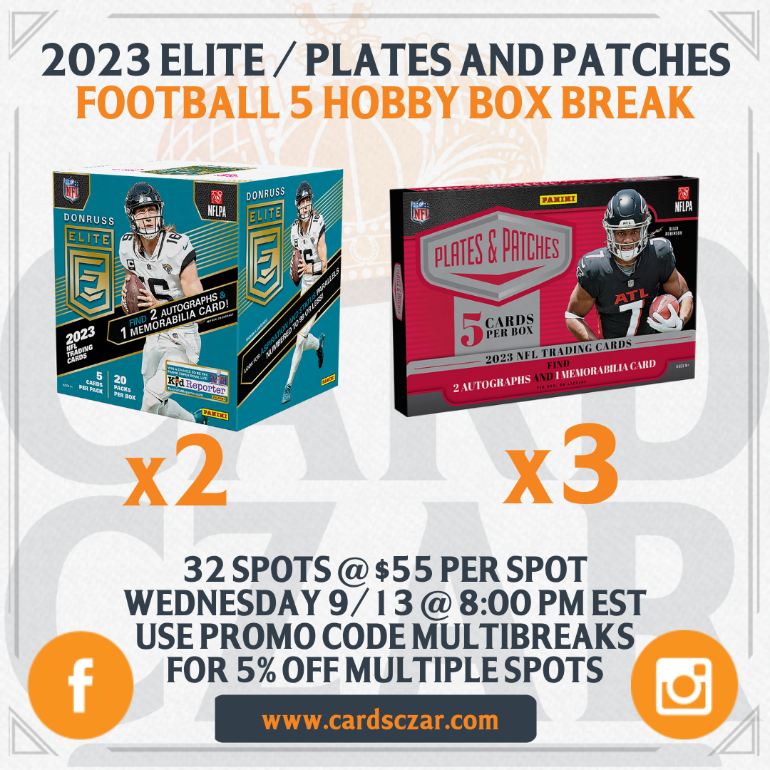 • 2023 Elite / Plates and Patches Football 5 Hobby Box Break