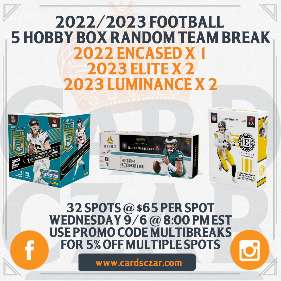 • 2022 Encased / 2023 Elite / 2023 Luminance Football 5 Hobby Box Break