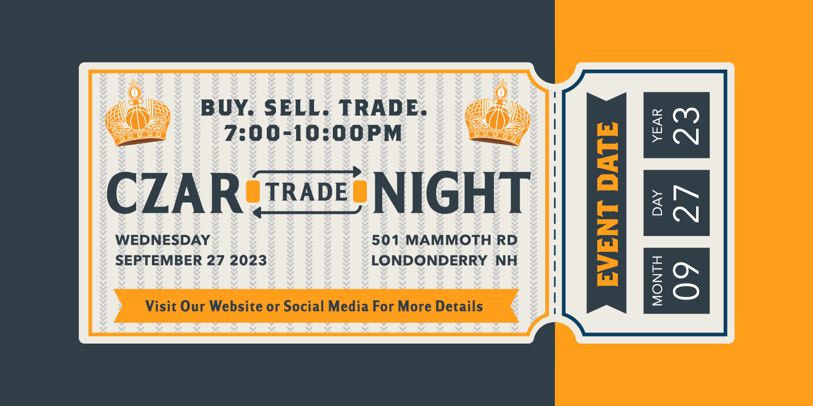 Join Us On Card Czar Trade Night! Bring your collectibles and make a deal. We have been having killer turnout with last head count well over 45 people! Your once a month chance to meet with other local Czar collectors in the community and build upon your collection at the shop. Also don't forget its... View Article