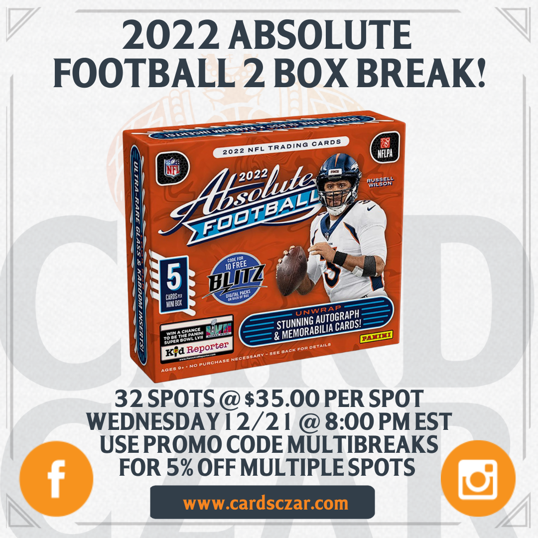 • 2022 Absolute Football 2 Box Break #2 (WILL OPEN ONCE #1 CLOSES)
