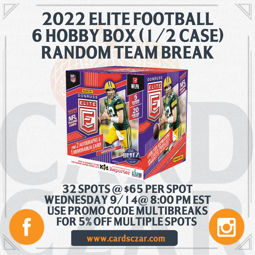 2022 Elite Football Half Case (6 Box) Break The sought after On Card / Pro Uni Rookie Pen Pals are back in 2022 thanks to Elite Football! We will be chasing the legendary Aspirations and Status die cuts as well! What's in the break? (On Average) 12 Autographs (or more) 6 Memorabilia Cards 18 Rookies... View Article