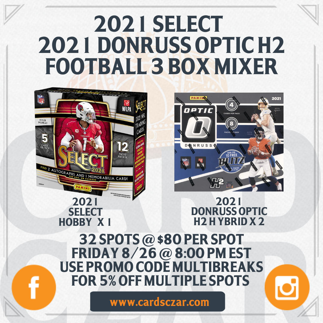 2021 Select / Donruss Optic Hybrid (x2) Football 3 Box Break The HIGHLY anticipated 2021 Select Football set will be BROKEN on a special edition of Friday Night Breaks! What's in the break? (On Average) 4 Autographs (or more) Tons of silver, parallels and rookies ALL CARDS SHIP! USE PROMO CODE MULTIBREAKS FOR 5% MULTIPLE... View Article