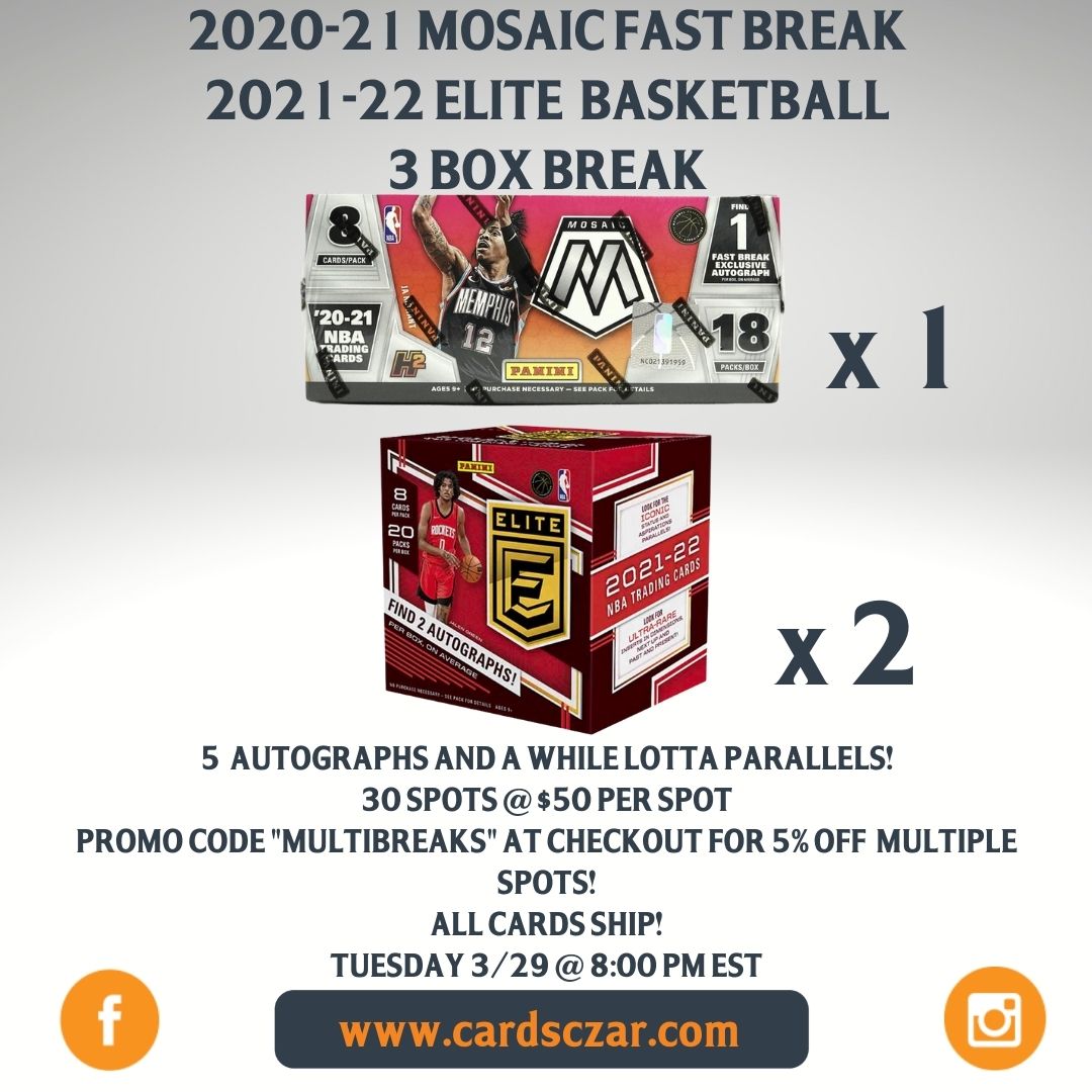 • 2020-21 Mosaic Fast Break / 2021-22 Elite Basketball 3 Hobby Box Break