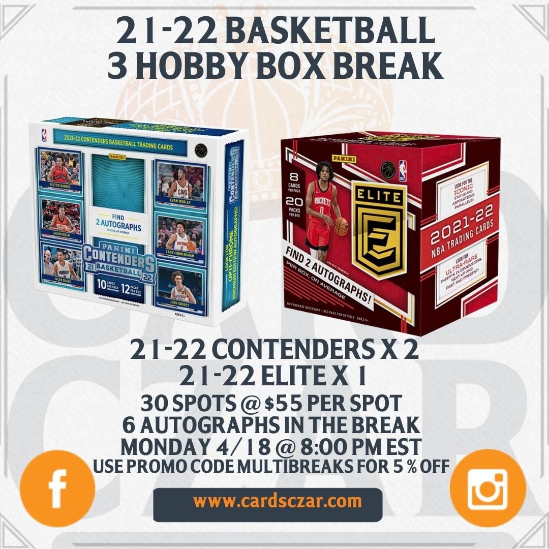 • 2021-22 Contenders / 2021-22 Elite Basketball 3 Hobby Box Break