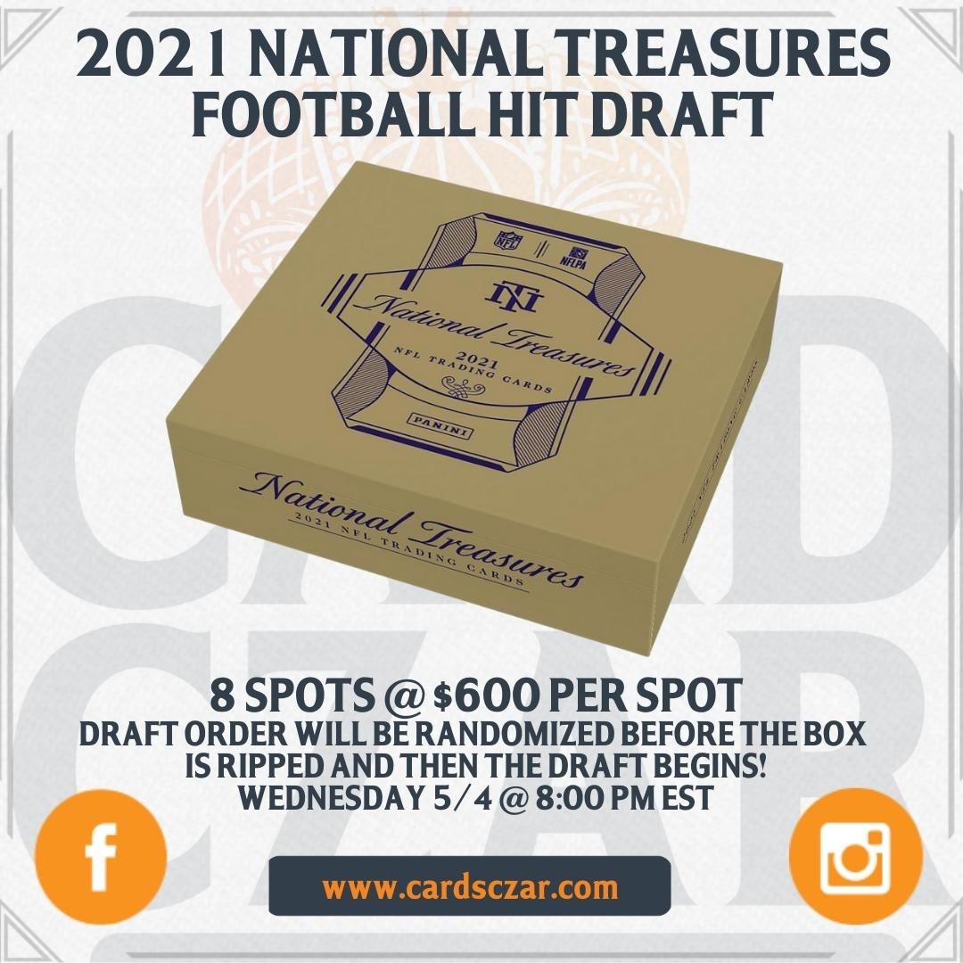 2021 National Treasure Football Hit Draft 2021 National Treasures is here and it is gorgeous (per usual). We will be running a HIT DRAFT on release day. What will be hit in the 8 card box? 3 Autographs/Patch Autographs 3 Memorabilia Cards 1 Base/Insert 1 Base/Insert Parallel Most boxes will deliver extra auto and memorabilia... View Article