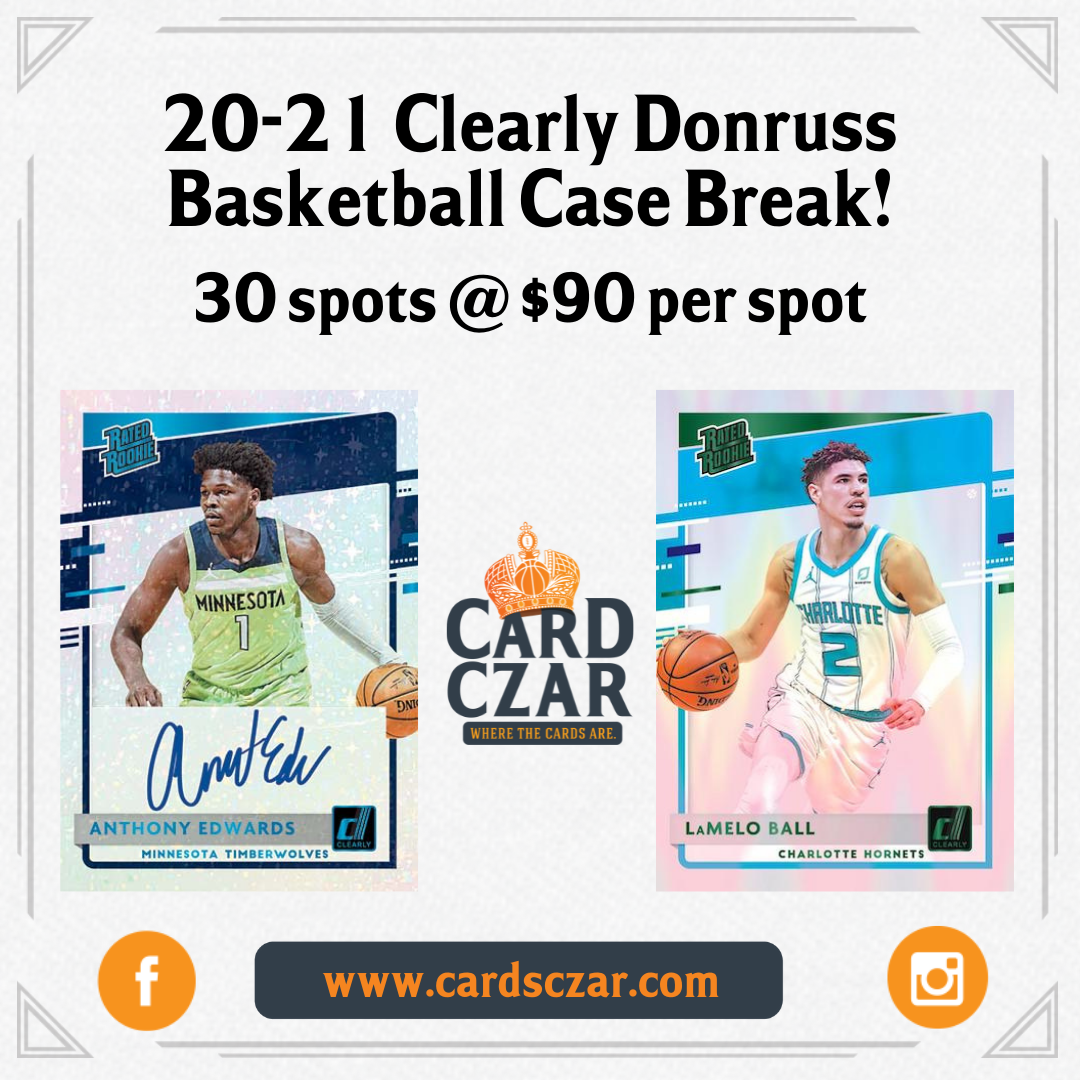 2020-21 Clearly Donruss Basketball Case Break We have a sealed case of 20-21 Clearly Donruss Basketball. That means autos, case hits, rookies, parallels and more! All cards ship! 30 Spots @ $90 per Spot Via Instagram Live Dates and times may change.