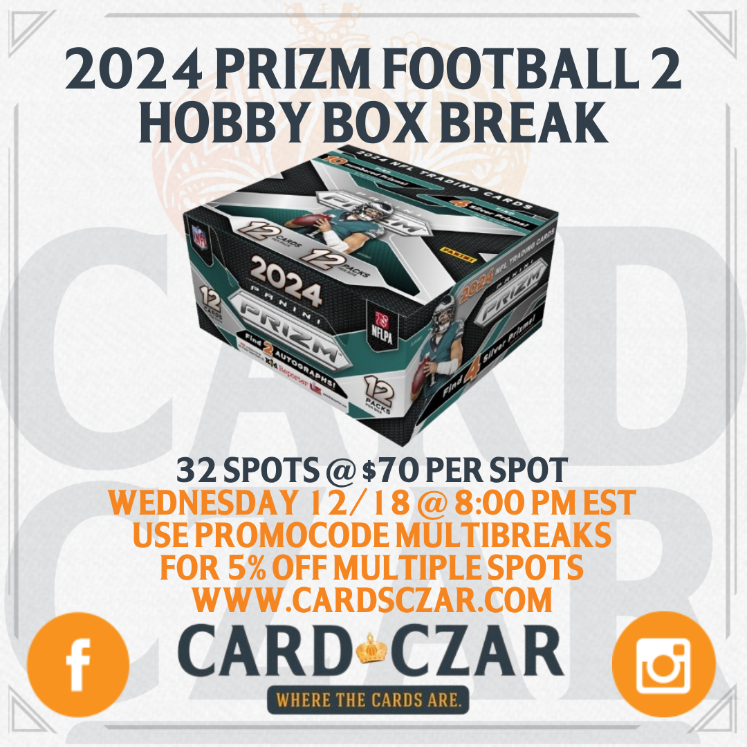 2024 Prizm Football 2 Hobby Box Break 2024 Prizm is here JUST in time for Christmas and it just so happens to be our LAST break of 2024! No better way to end a great year than by ripping to hobby favorite! If this year's edition goes anything like the last few years, there will... View Article