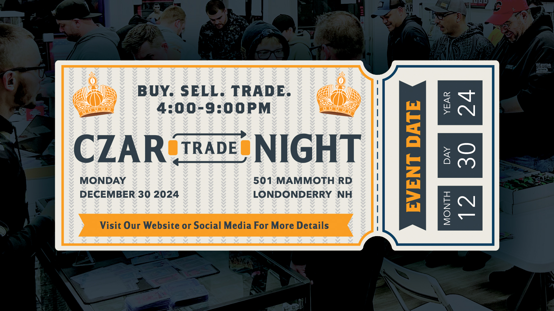 Join Us Friday nights 6:00-10:00pm on WHATNOT! We will be running hand selected FIRE from the show boxes. Join us as we continue to build out the Czar Community on the media channels. Jim and Joe will be slinging the singles till ya'll pass out. CLICK HERE AND FOLLOW OUR PROFILE ON WHATNOT