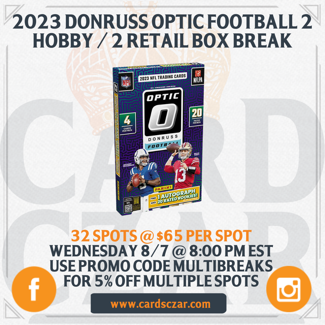 • 2023 Donruss Optic Football Hobby & Retail 4 Box Break