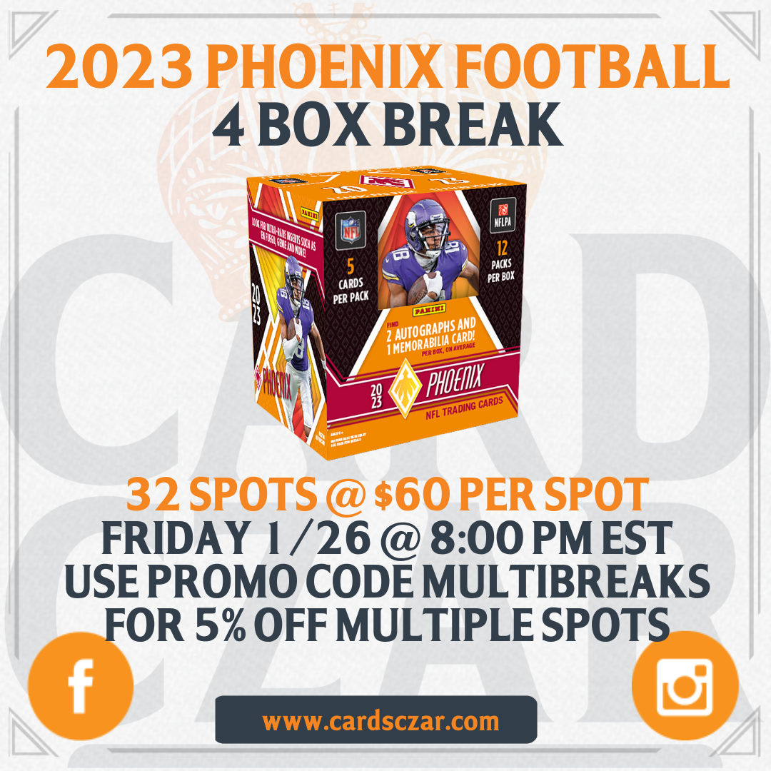 2023 Phoenix Football 4 Hobby Box Break Phoenix is here and it is as colorful as ever! Chase the popular #'d parallels, RPAs and CASE HITS that comes out of these Phoenix boxes in a special edition of Friday Night Breaks! This break will be: 2023 Phoenix Football Hobby x 4 What's in the break?... View Article