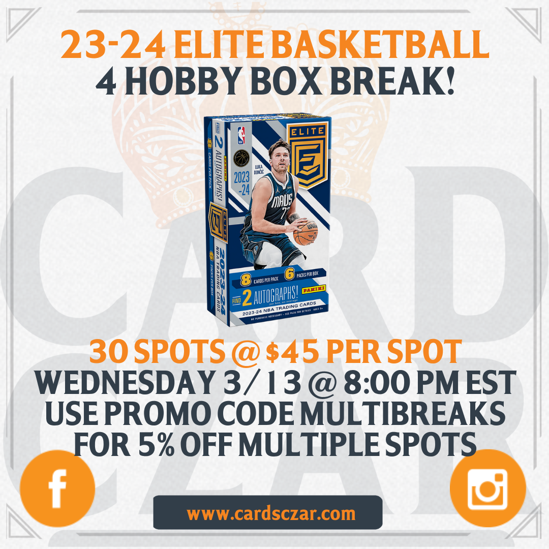 2023-24 Elite Basketball 4 Hobby Box Break Elite is back in 2024 with a brand new look! Less base card, more parallels and inserts! One of the most slept on products in the Czar's opinion and we have often struck GOLD! Will we hit again?! Let's find out on Wednesday night! This break will be:... View Article