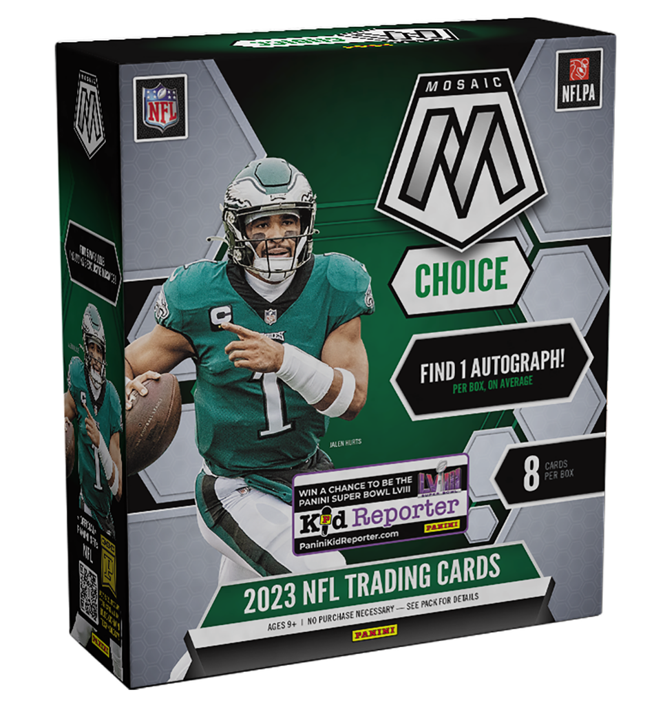 The 2023 Panini Mosaic NFL Trading Card Box (Choice) contains 8 cards per pack and 1 pack per box!