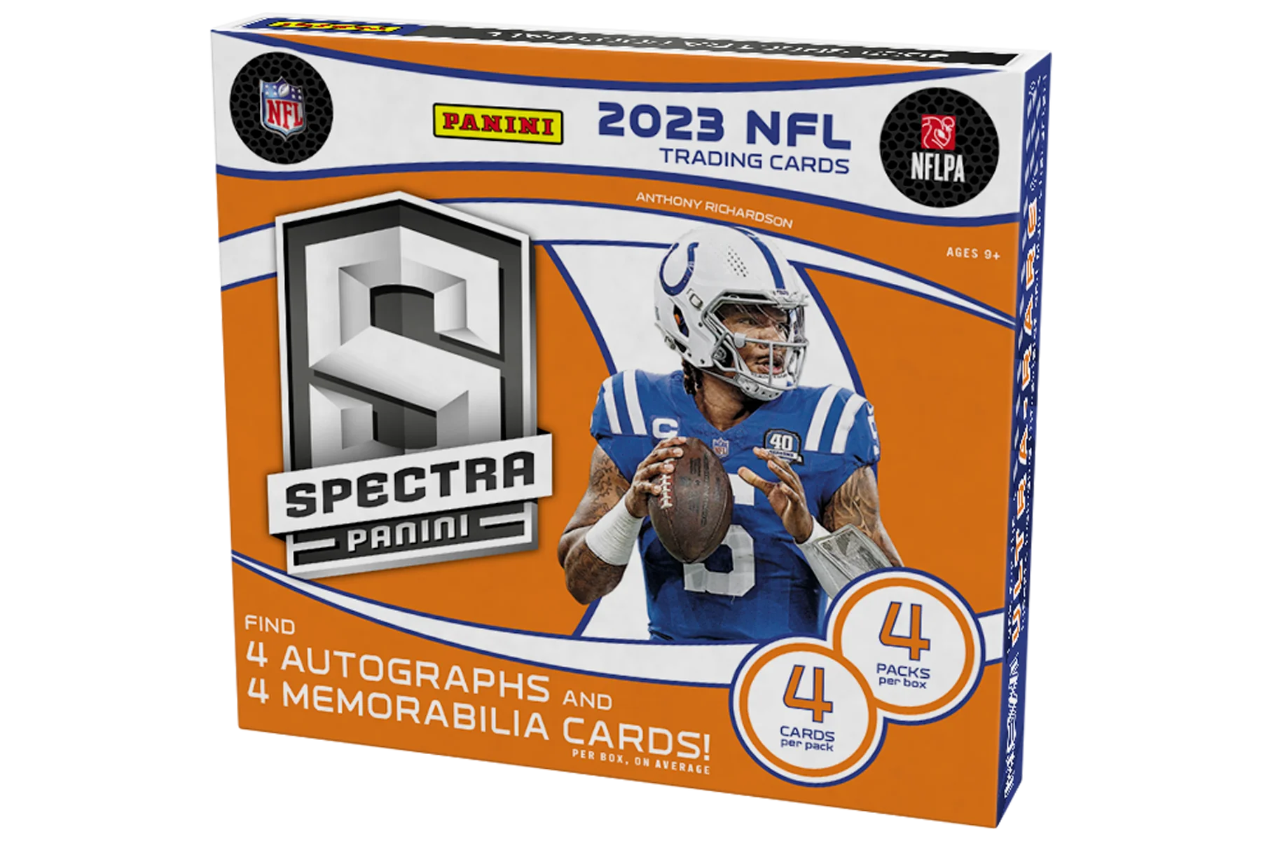 Spectra is renowned for its colorful, captivating parallels and in 2023, collectors will find the likes of Celestial, Hyper, Interstellar, Neon Blue Die Cut, Astral, Spectris, Neon Green Die Cut, Meta, Pink Die Cut, Orange Die Cut, Universal Die Cut, Neon Platter, Psychadelic, Neon Marble, Nebula and Gold, numbered to as low as 1!