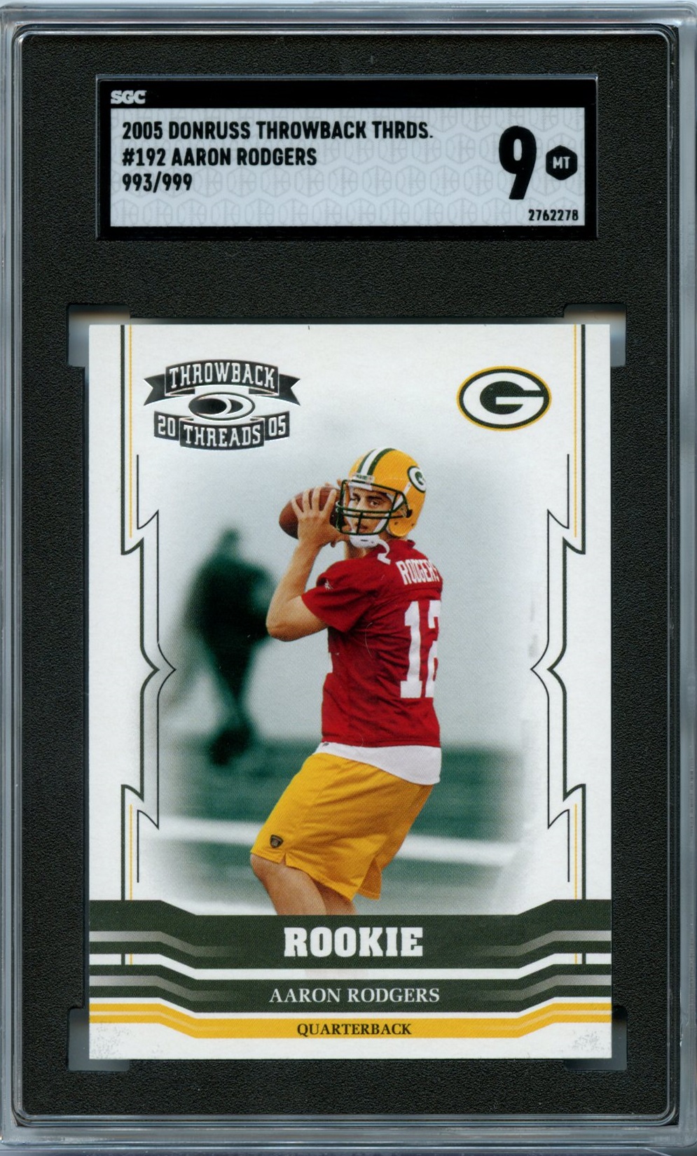 Aaron Rodgers 2005 Donruss Throwback Threads Rookie- #’d 999 SGC 9