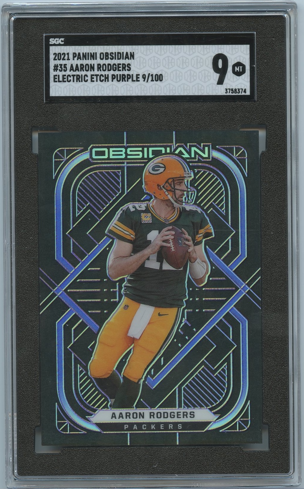 Aaron Rodgers 2021 Obsidian Electric Etch Purple- #’d 100- SGC 9