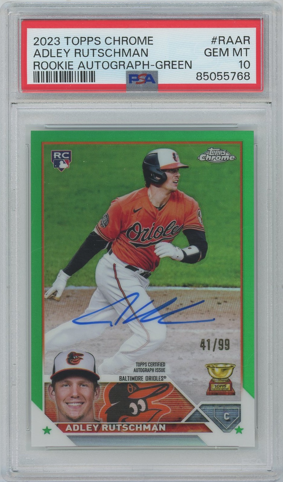 Adley Rutschman 2023 Topps Chrome Green Refractor Auto- #’d 99- PSA 10
