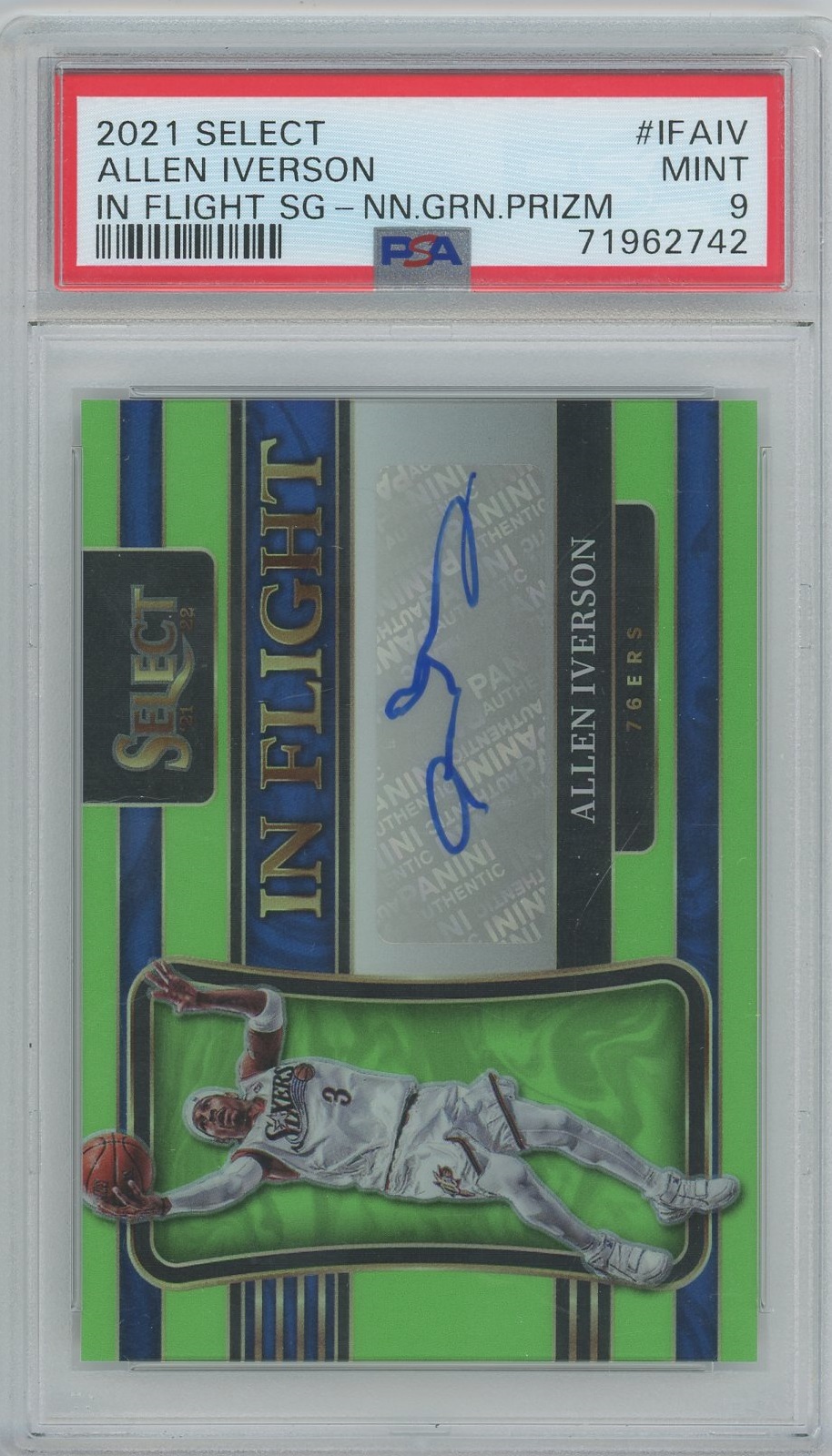 Allen Iverson 2021-22 Select In Flight Signatures Neon Green- #’d 99- PSA 9