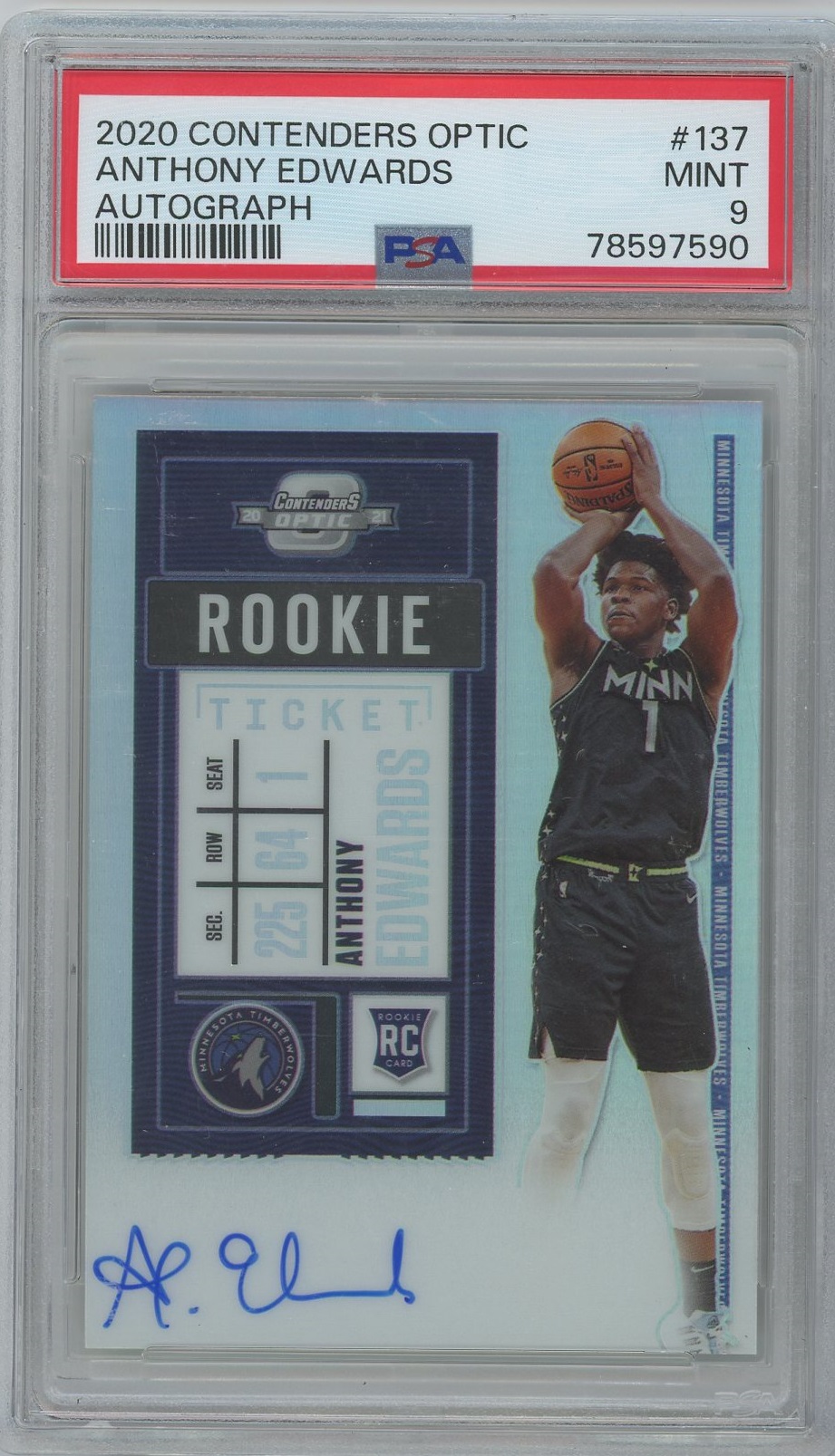 Anthony Edwards 20-21 Contenders Optic Silver Auto- PSA 9