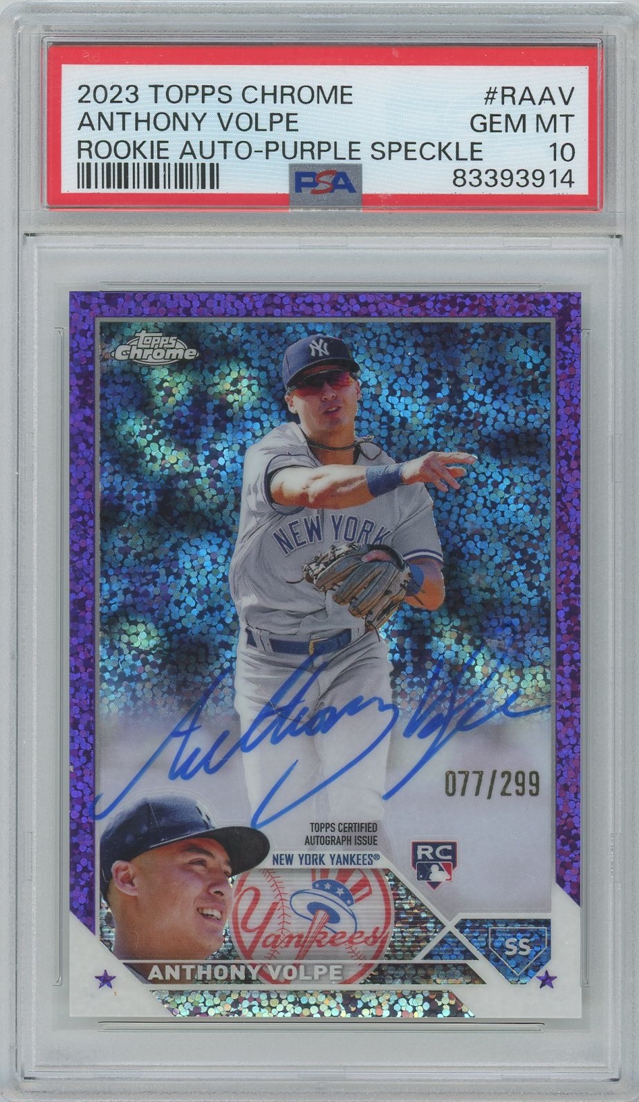 Anthony Volpe 2023 Topps Chrome Purple Speckle Auto- #’d 299- PSA 10