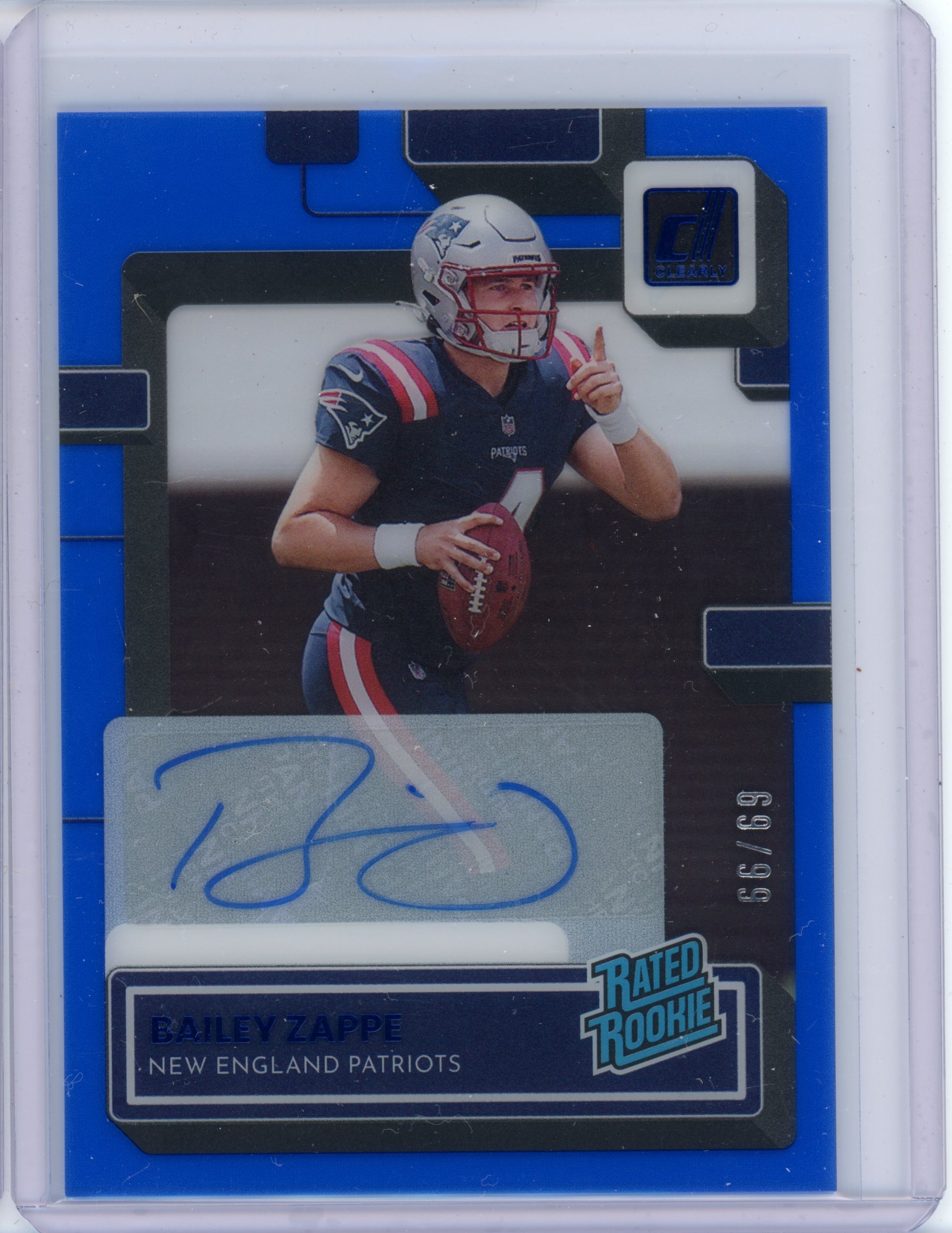 Bailey Zappe 2022 Clearly Donruss Blue Auto- #’d 99