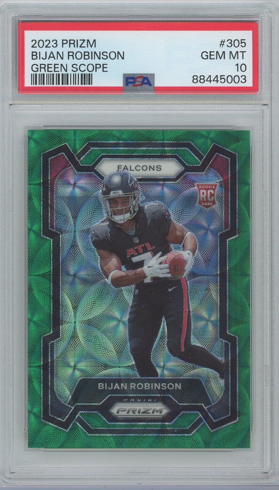 Bijan Robinson 2023 Prizm Green Scope- #’d 75- PSA 10