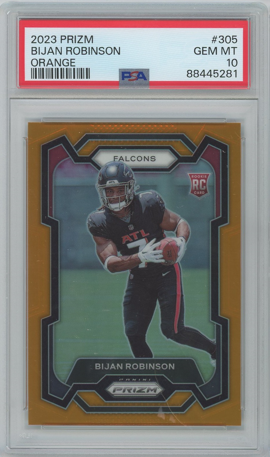 Bijan Robinson 2023 Prizm Orange- #’d 249- PSA 10