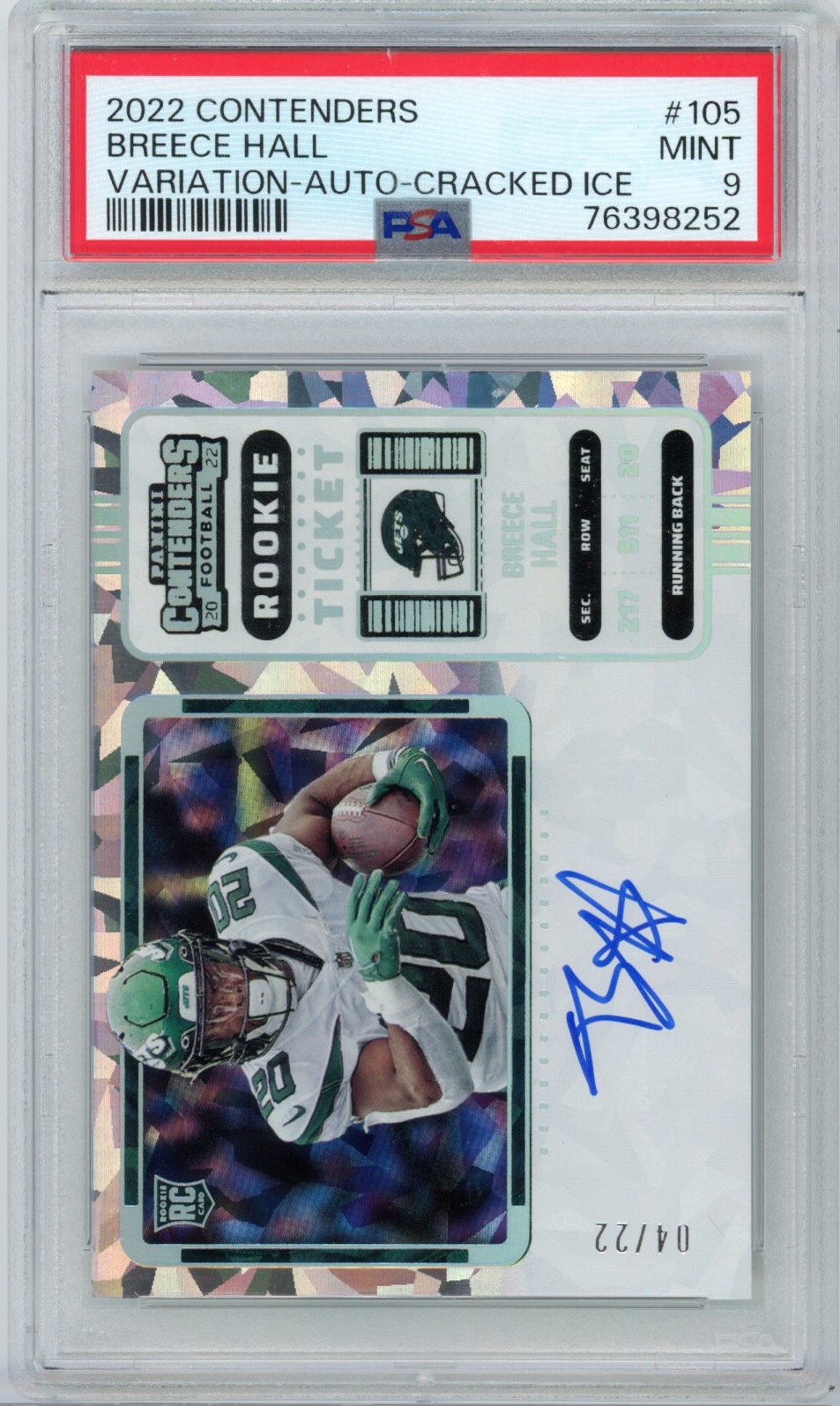 Breece Hall 2022 Contenders Cracked Ice Auto Variation- #’d 22- PSA 9
