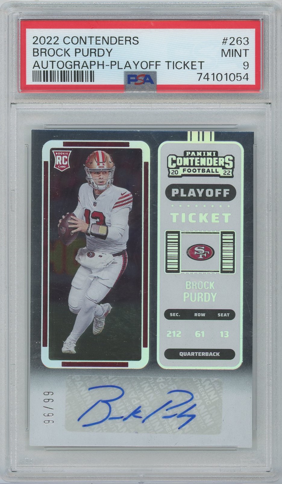 Brock Purdy 2022 Contenders Playoff Ticket Auto- #’d 99- PSA 9