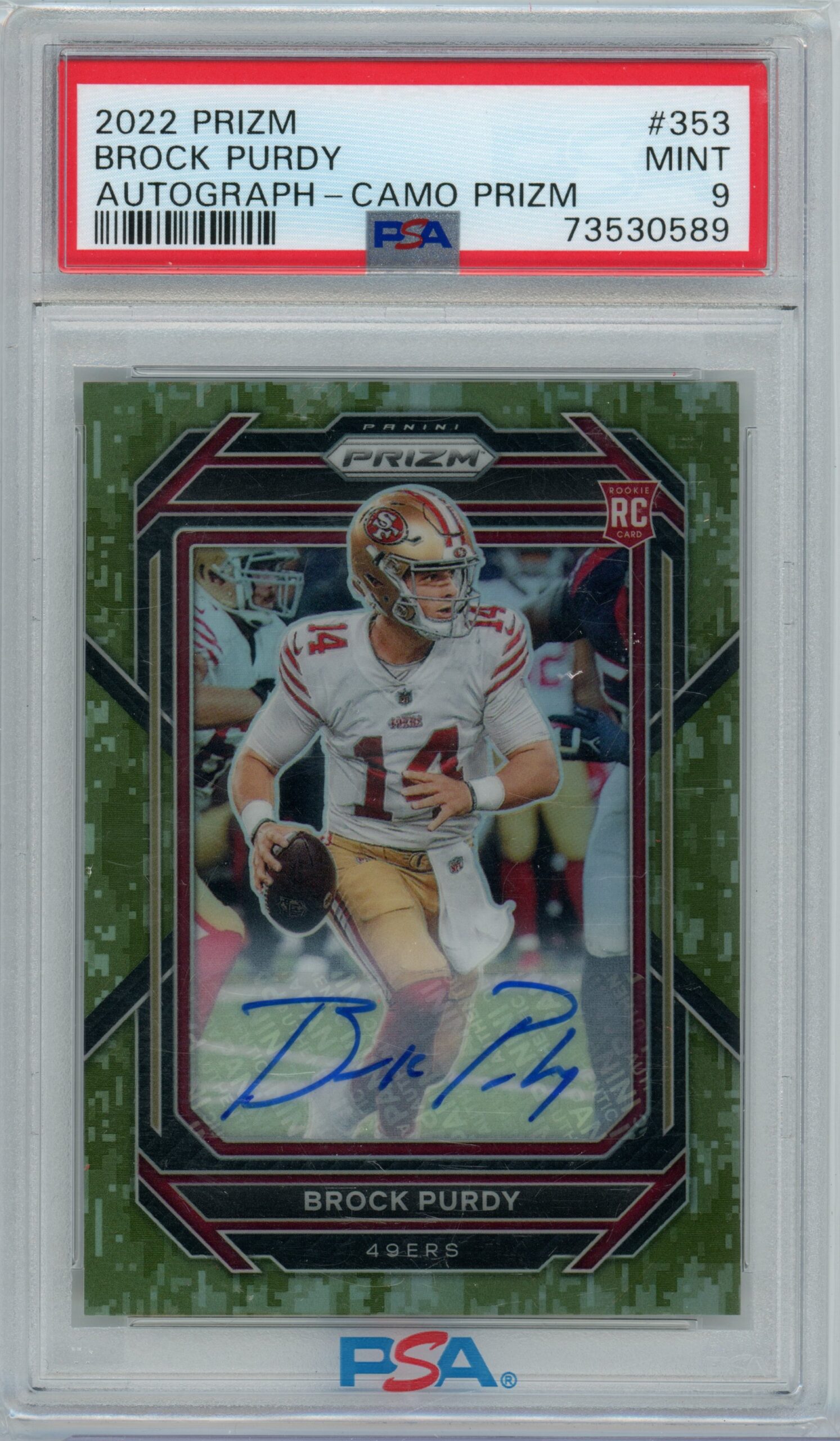 Brock Purdy 2022 Prizm Camo Auto- #’d 25- PSA 9