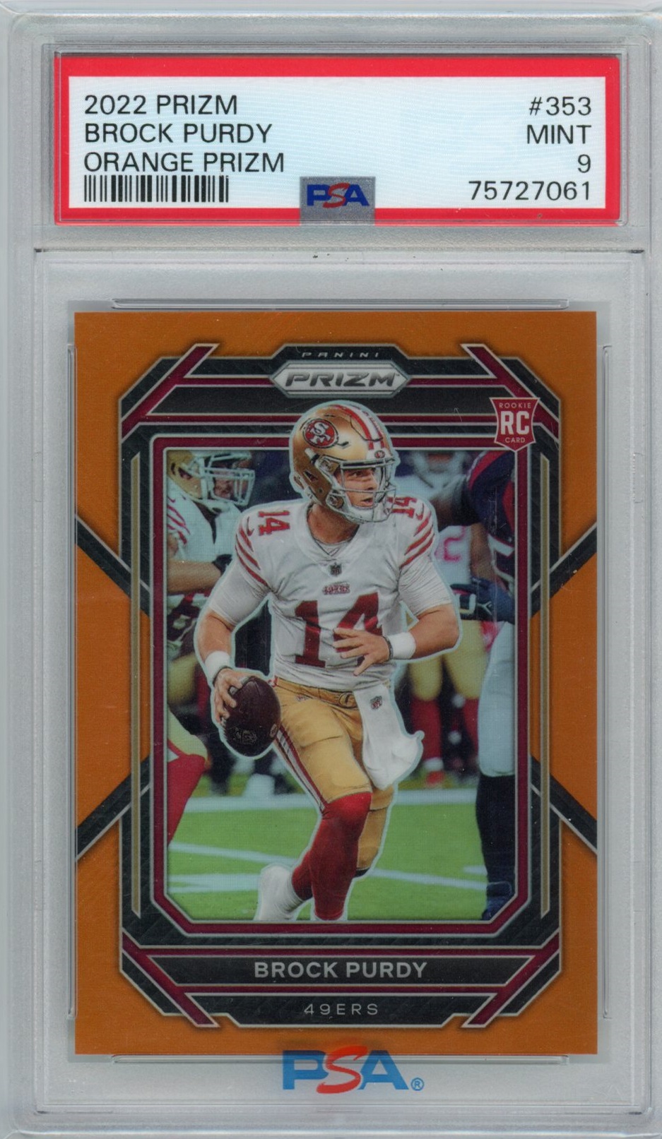 Brock Purdy 2022 Prizm Orange- #’d 249- PSA 9