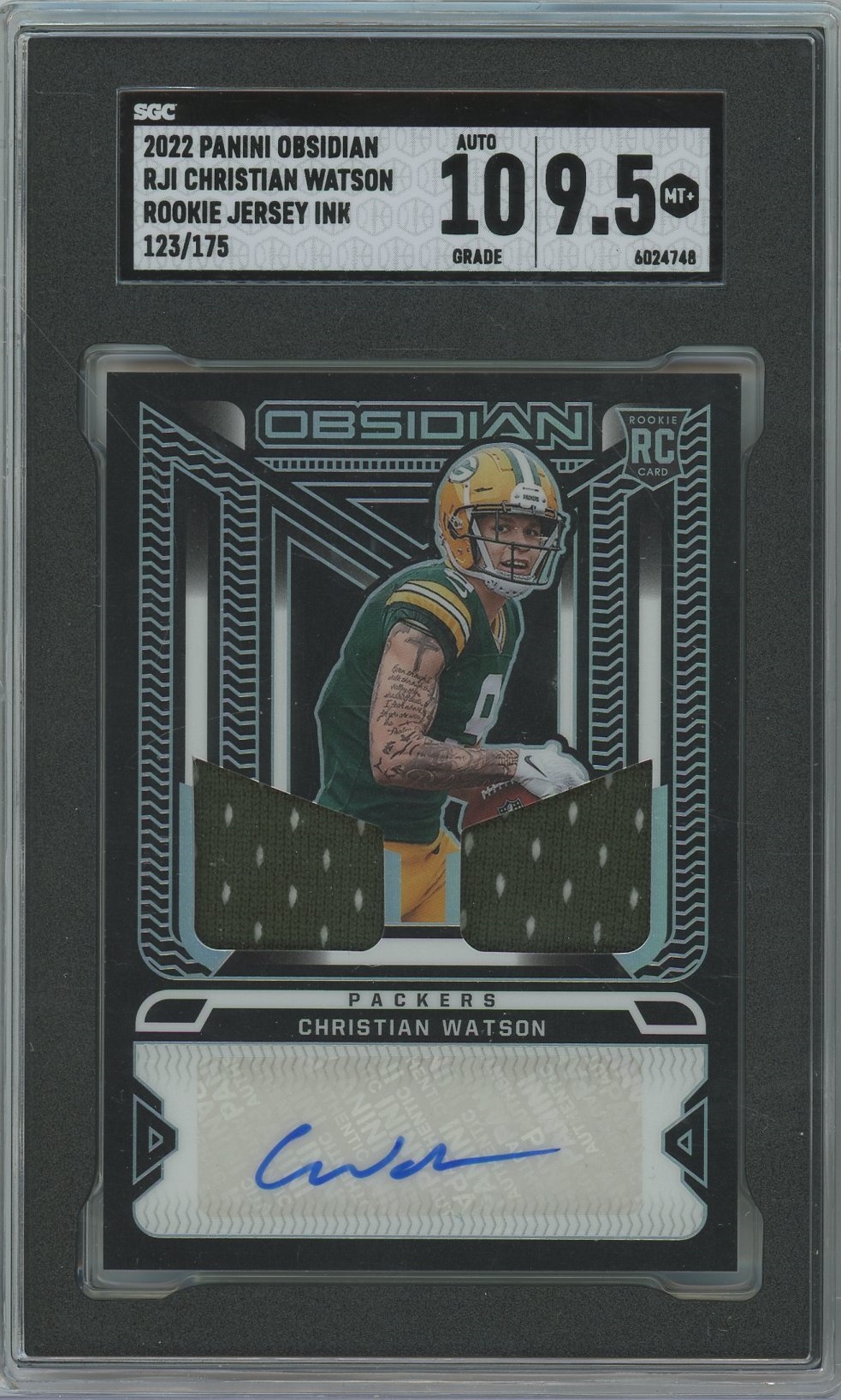 Christian Watson 2022 Obsidian Rookie Jersey Ink- #’d 175- SGC 9 .5