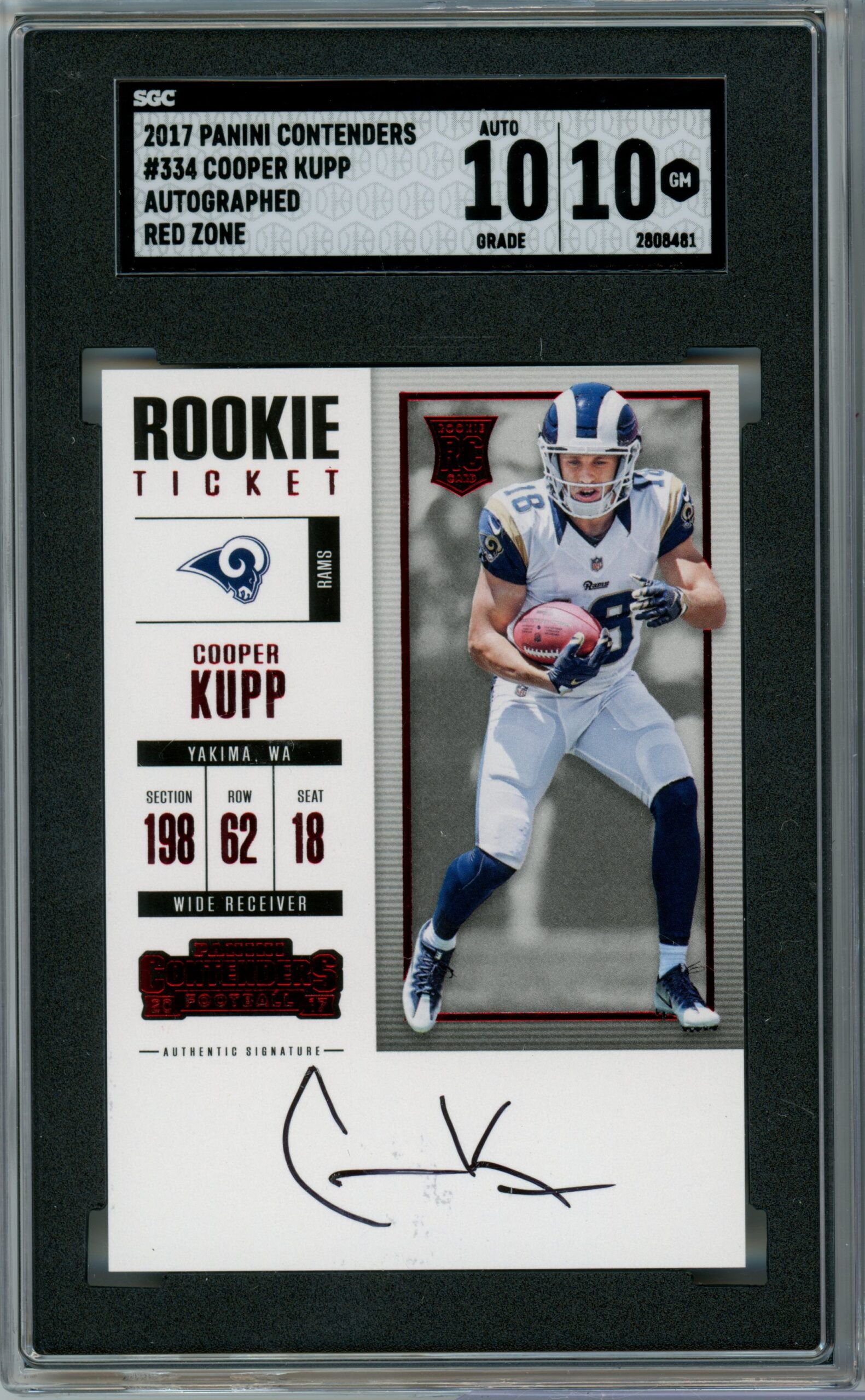 Cooper Kupp 2017 Contenders Rookie Ticket Auto Red Zone- SGC 10