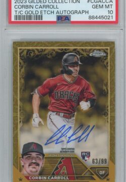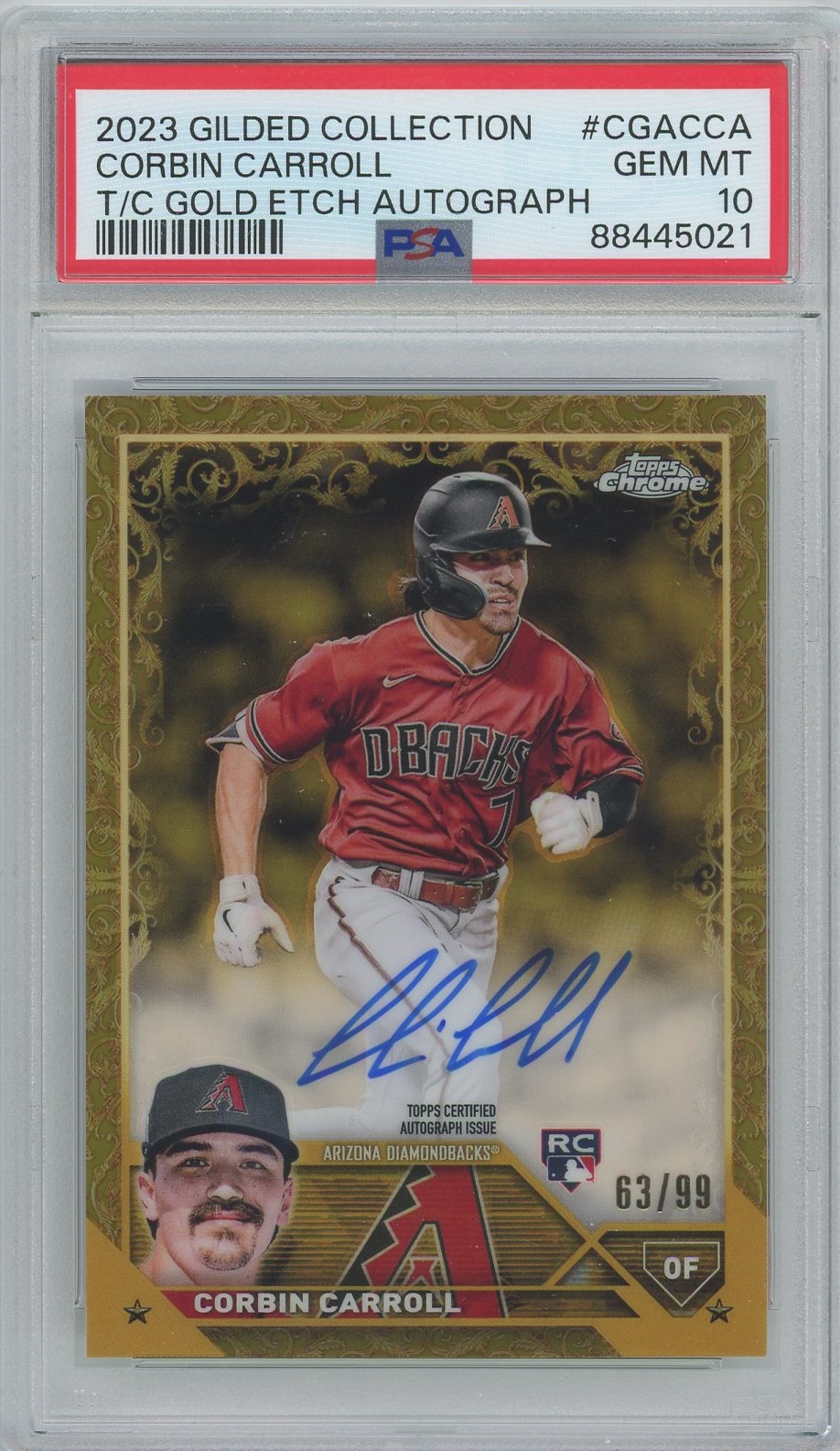 Corbin Carroll 2023 Topps Chrome Gilded Gold Etch Auto- #’d 99- PSA 10