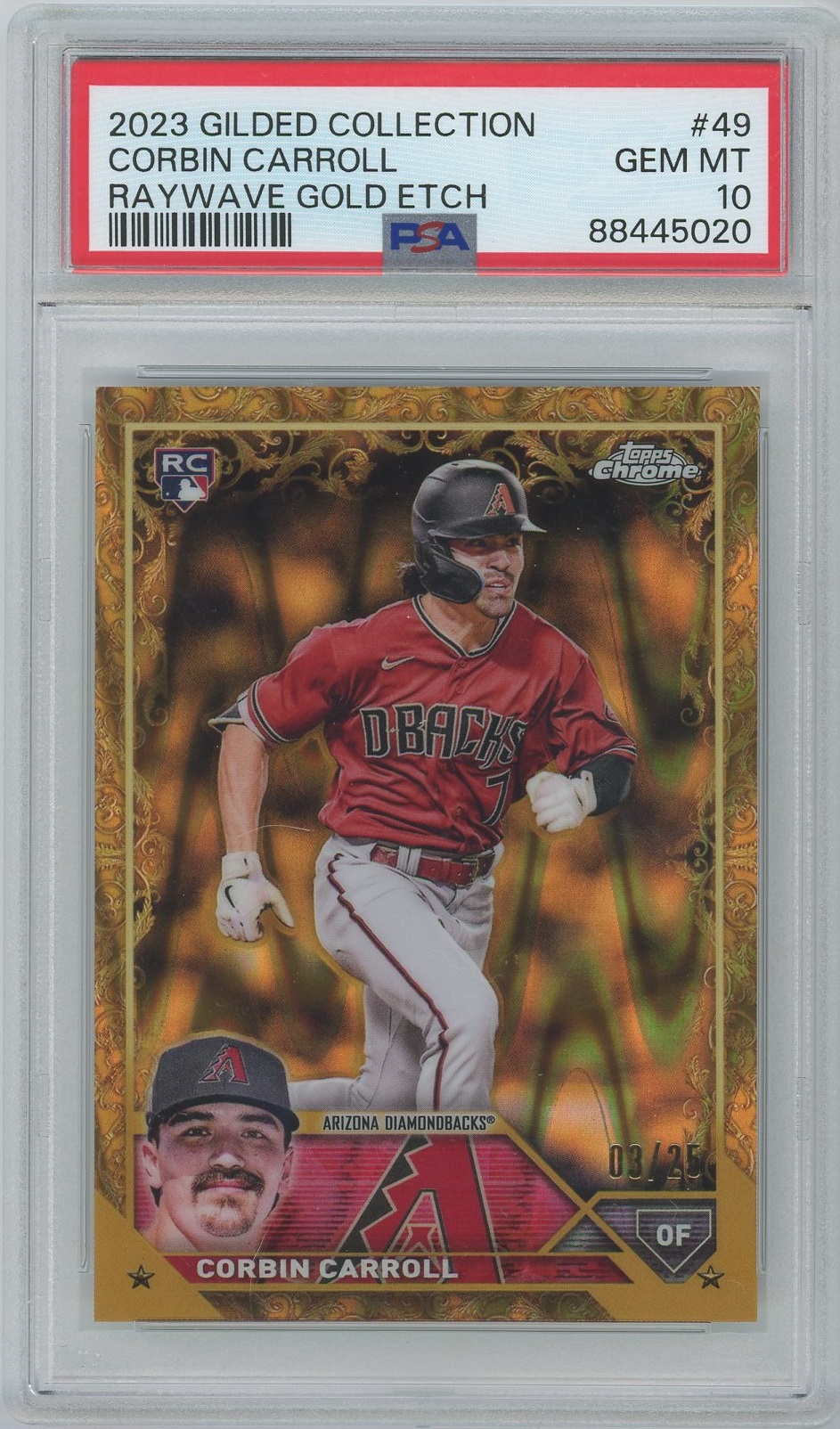 Corbin Carroll 2023 Topps Chrome Gilded Raywave Gold Etch- #’d 25- PSA 10