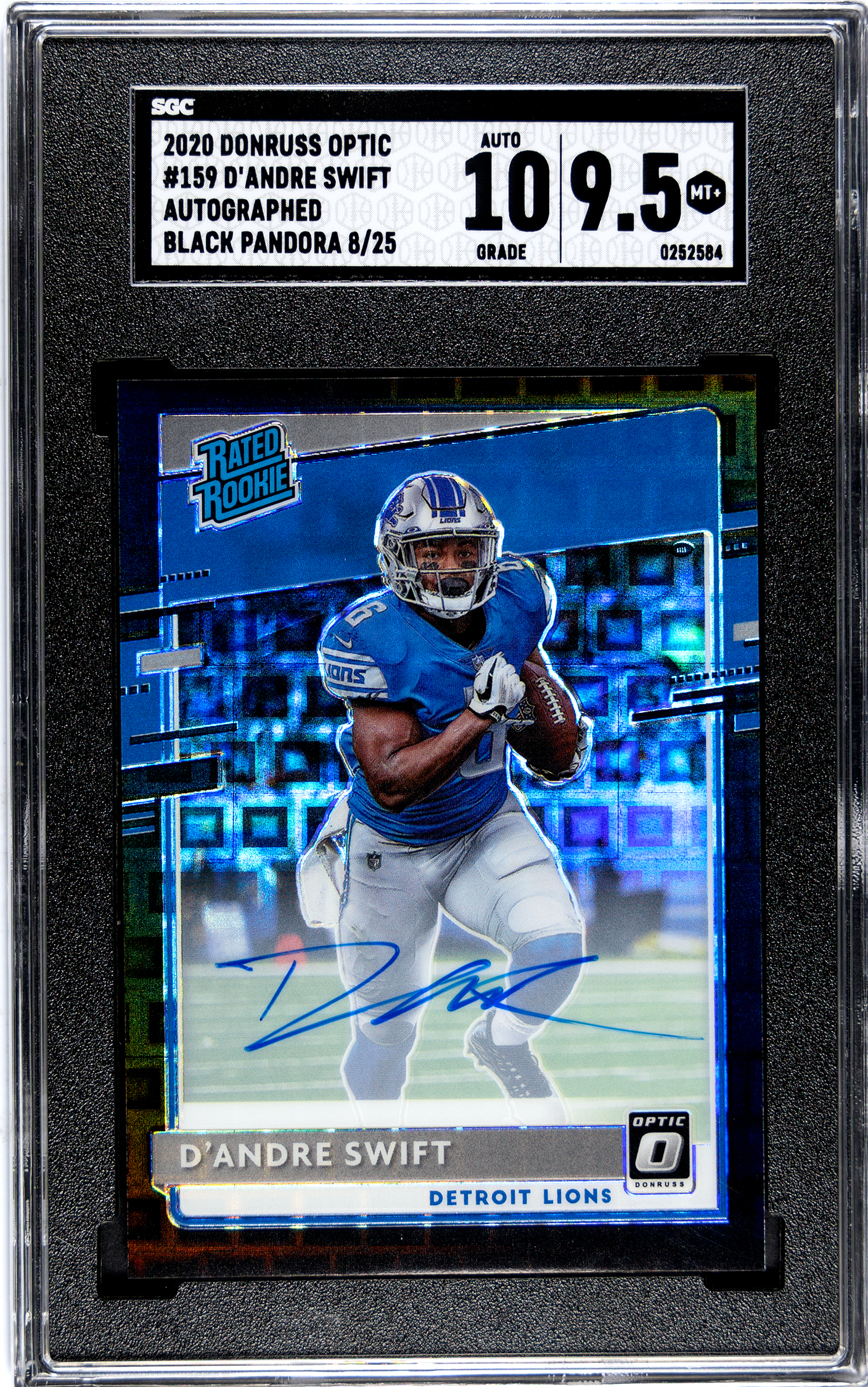 D’Andre Swift 2020 Donruss Optic Black Pandora Autograph- #’d 25 SGC 9.5