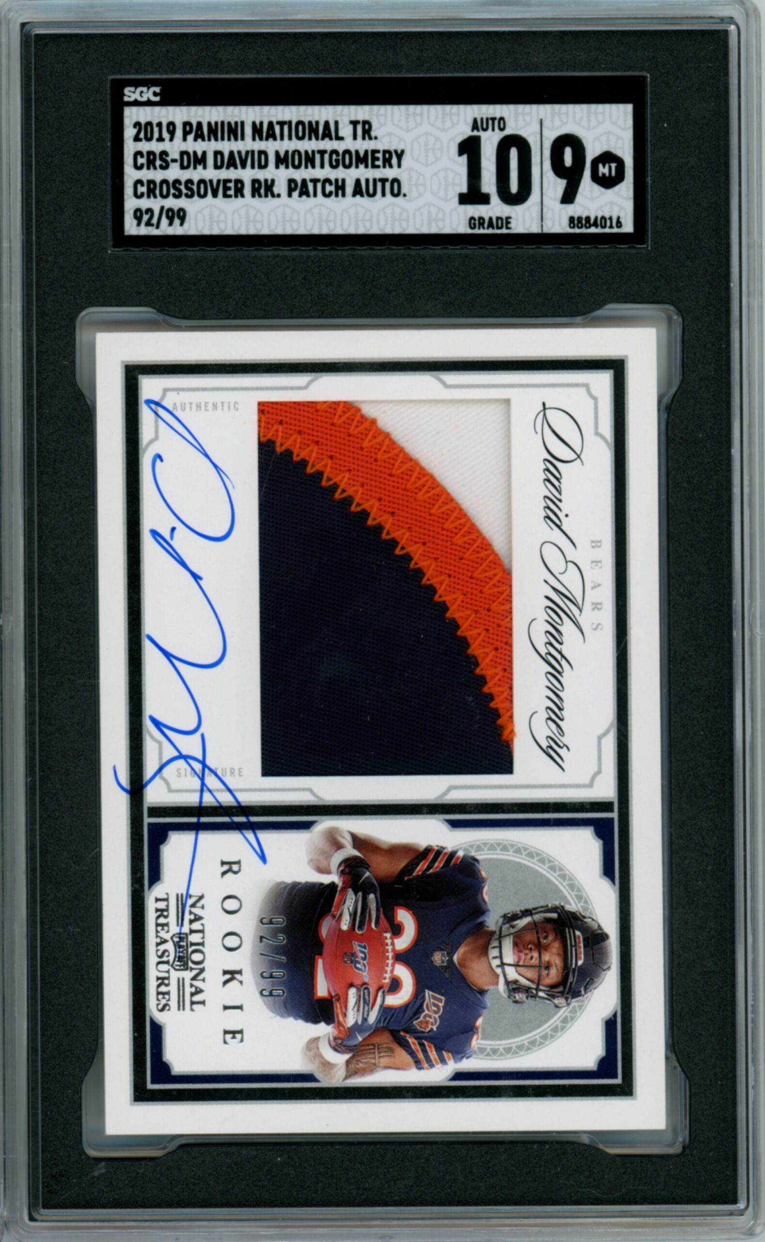 David Montgomery 2019 National Treasures Crossover Rookie Patch Auto- #’d 99- SGC 9