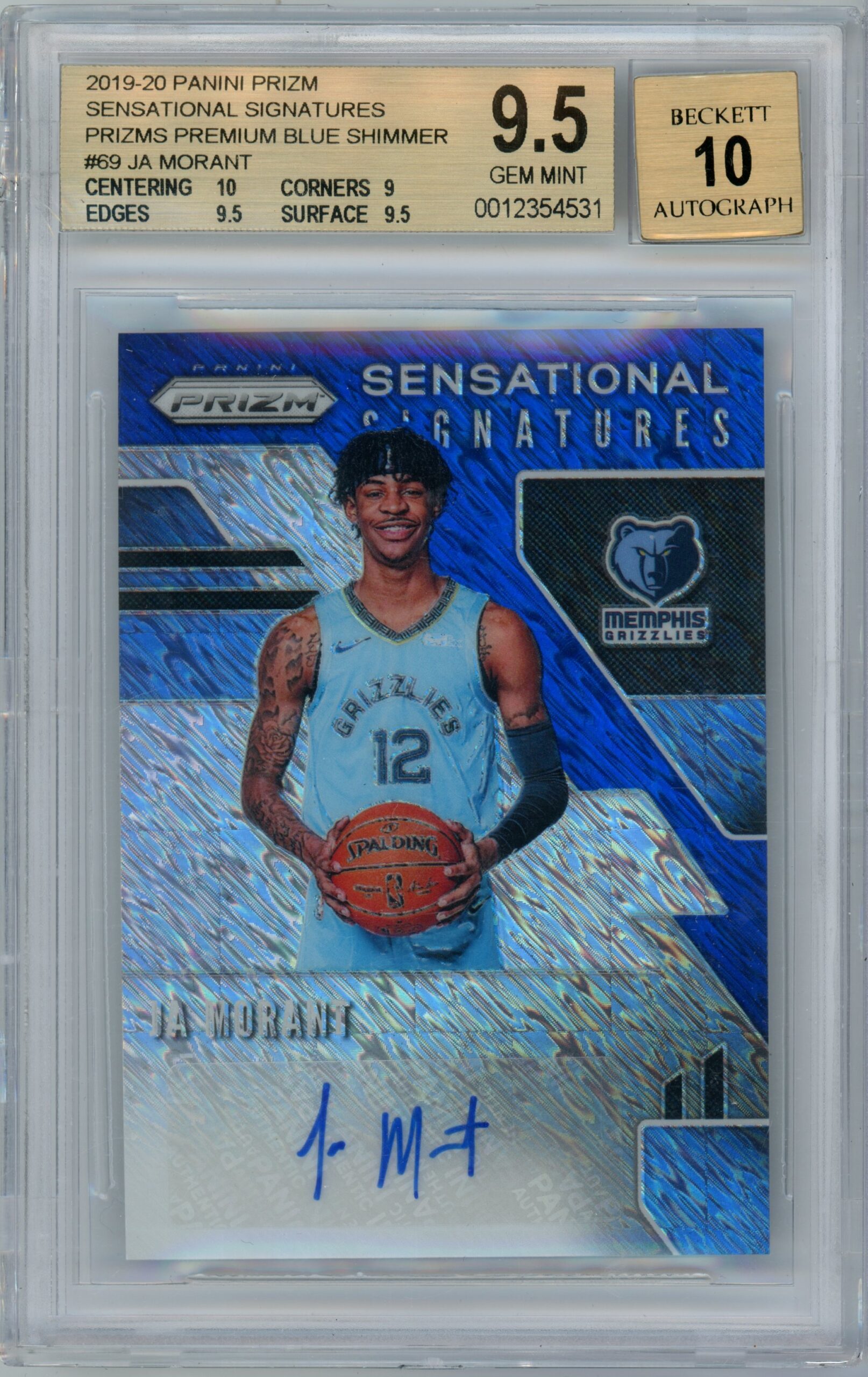 Ja Morant 2019-20 Prizm Sensational Signatures Blue Shimmer- BGS 9.5