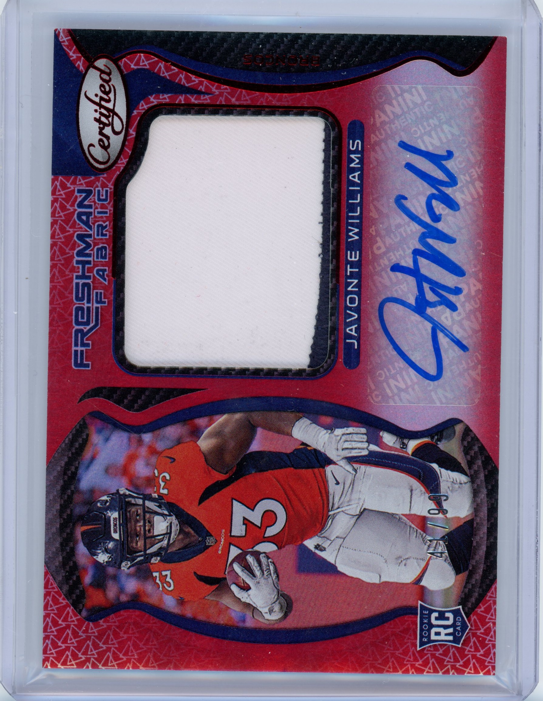 Javonte Williams 2021 Certified Freshman Fabric Red RPA- #’d 99