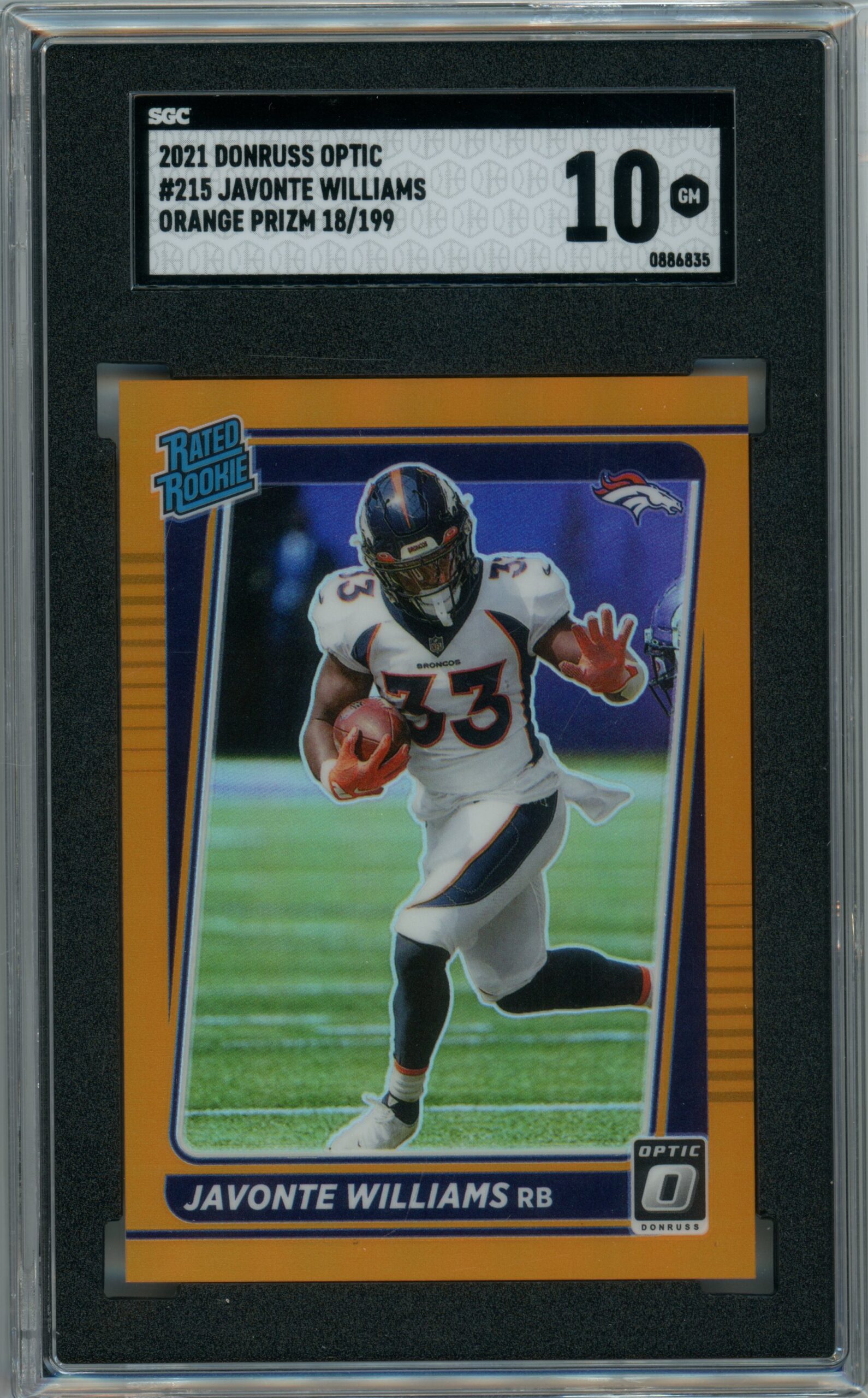 Javonte Williams 2021 Donruss Optic Orange- #’d 199- SGC 10