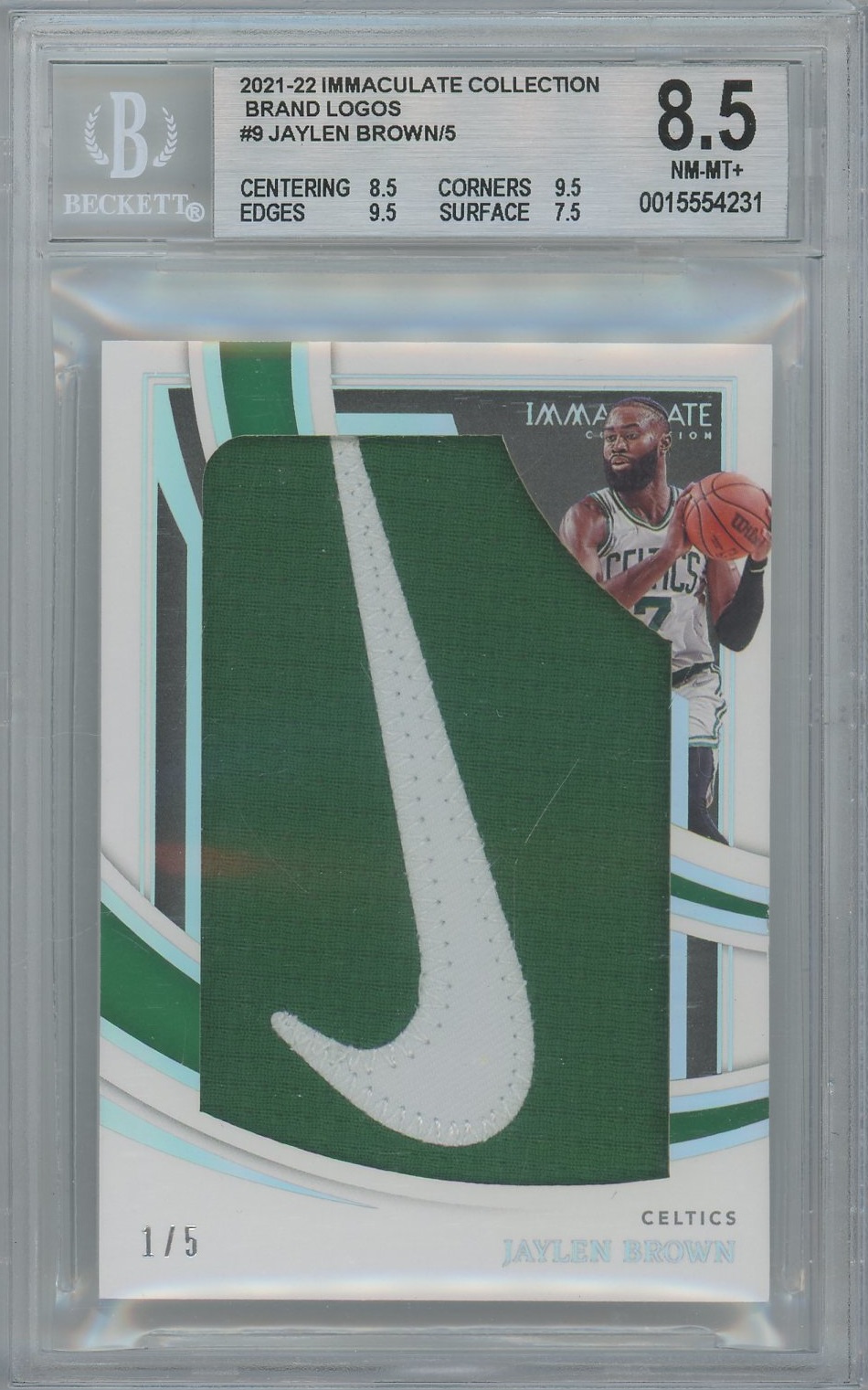 Jaylen Brown 21-22 Immaculate Brand Logos Nike Swoosh Patch- #’d 5- BGS 8.5