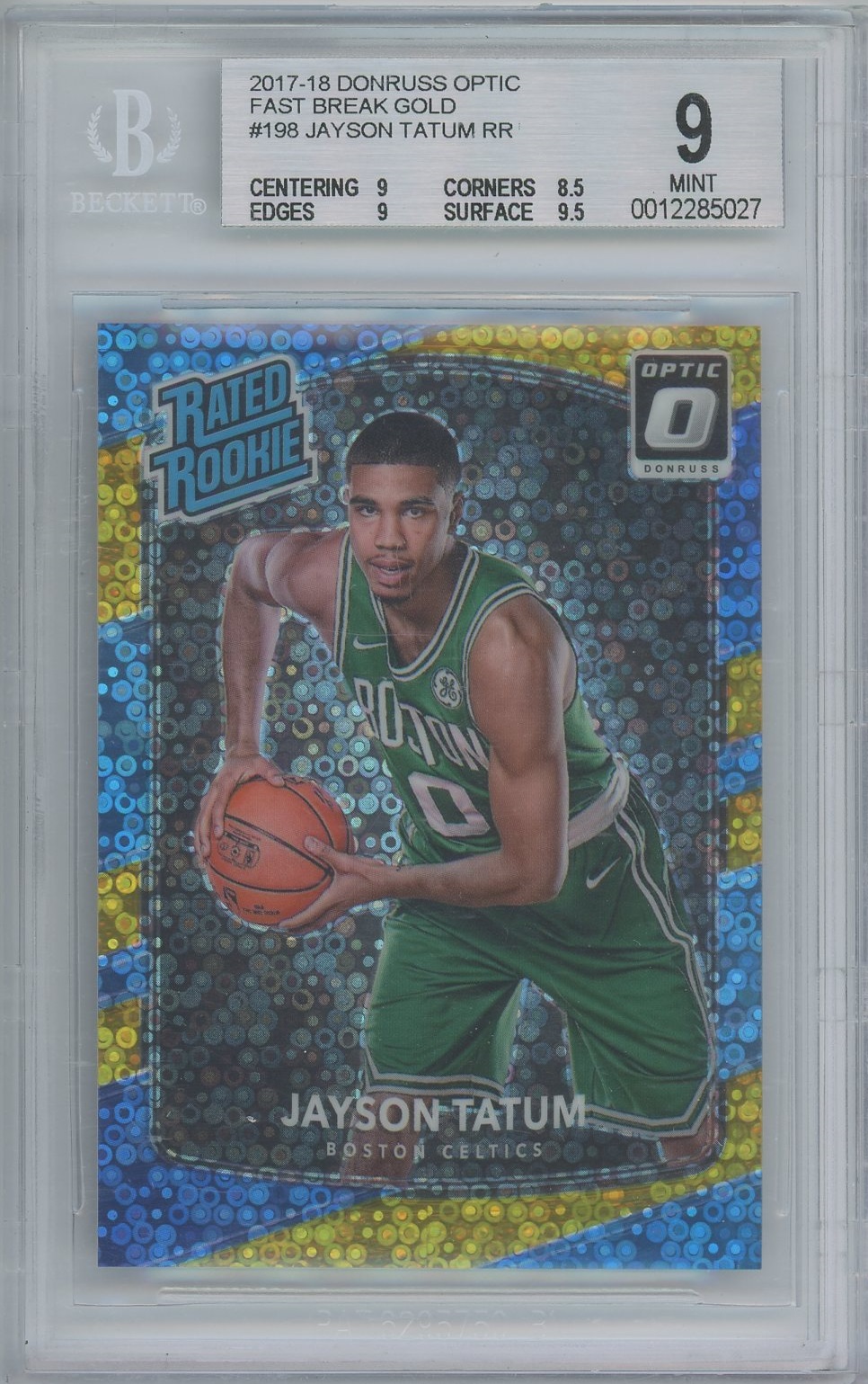 Jayson Tatum 2017-18 Donruss Optic Fast Break Gold Disco Prizm- #’d 10- BGS 9