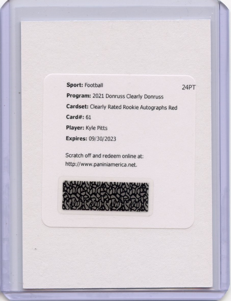 Kyle Pitts 2021 Clearly Donruss Rookie Autograph Red- #’d 49 REDEMPTION