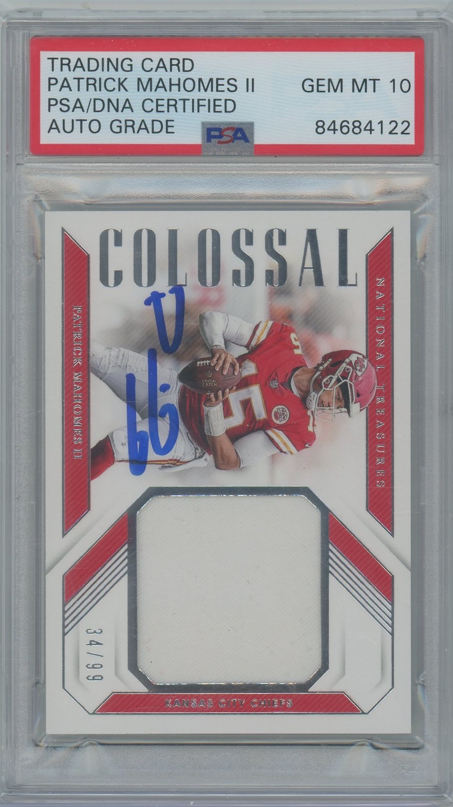 Patrick Mahomes 2018 National Treasures Colossal Patch – #’d 99 – IP Auto – PSA 10