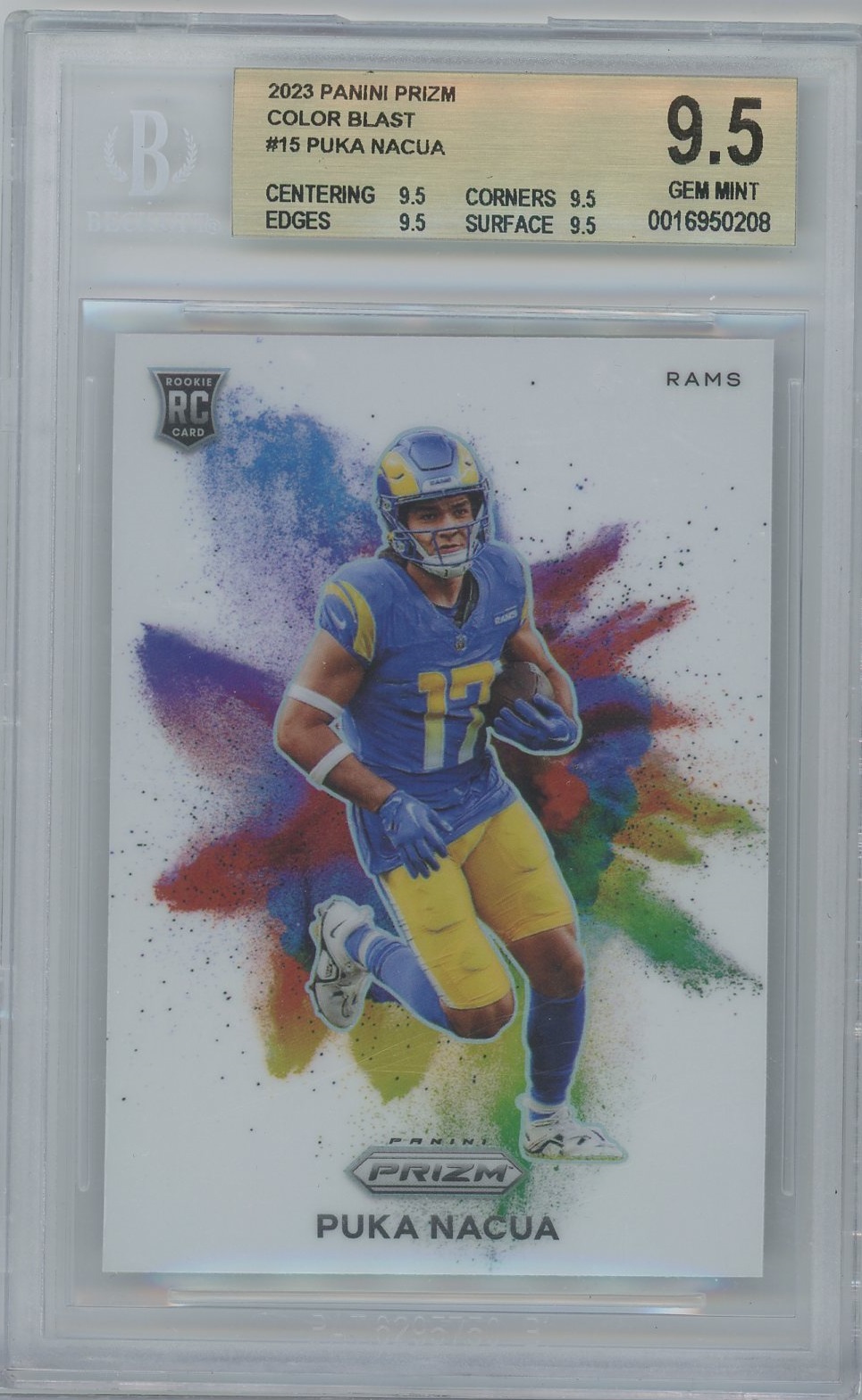 Puka Nacua 2023 Prizm Color Blast- Case Hit SSP- BGS 9.5