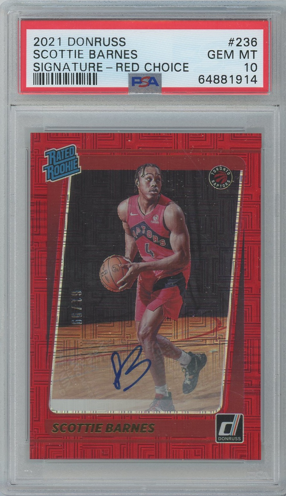 Scottie Barnes 21-22 Donruss Choice Red Auto- #’d 99- PSA 10