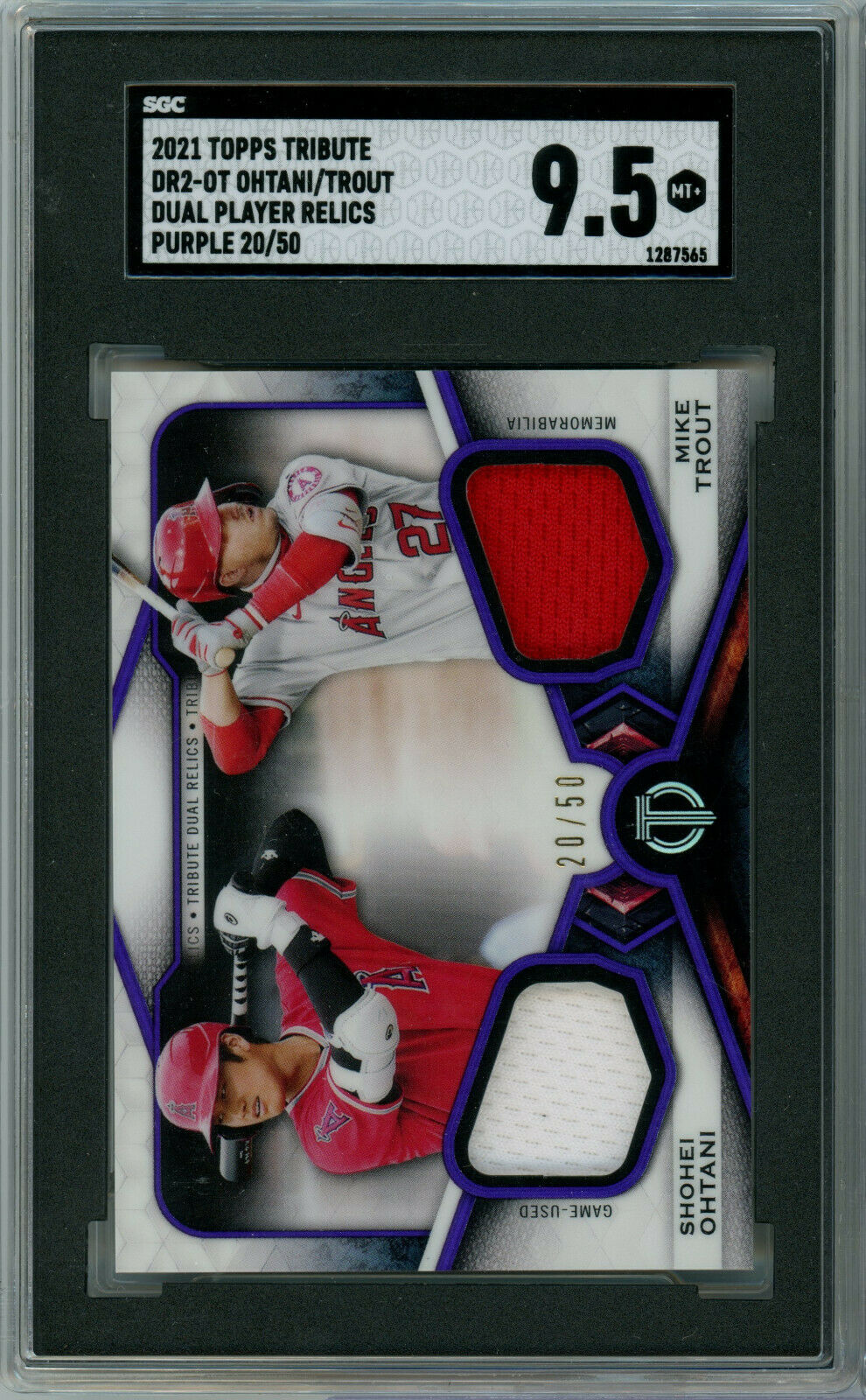 Shohei Ohtani 2021 Topps Tribute Dual Player Relic Purple- #’d 50- SGC 9.5