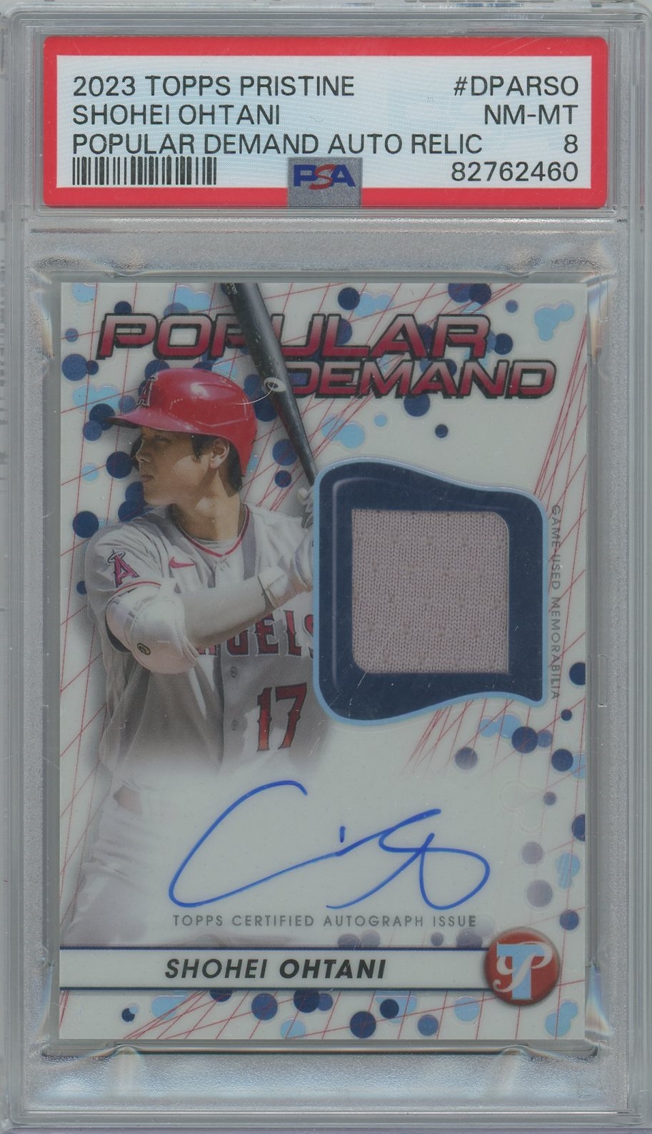Shohei Ohtani 2023 Topps Pristine Popular Demand Patch Auto- PSA 8